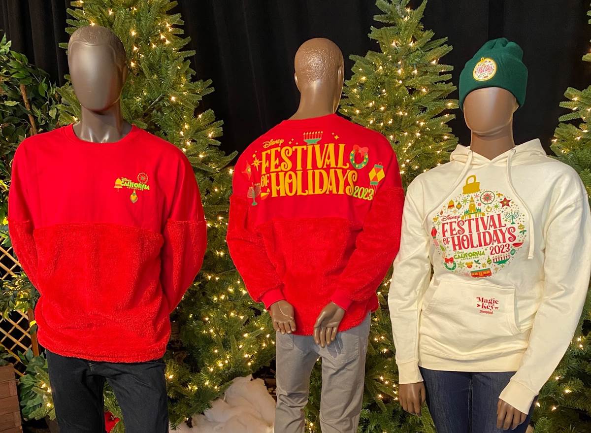 Lastly, with Disney Festival of Holidays back for the year at Disney California Adventure, we get a new line of merchandise – including a sweater, a Spirit Jersey, a beanie and two drinkware items.
