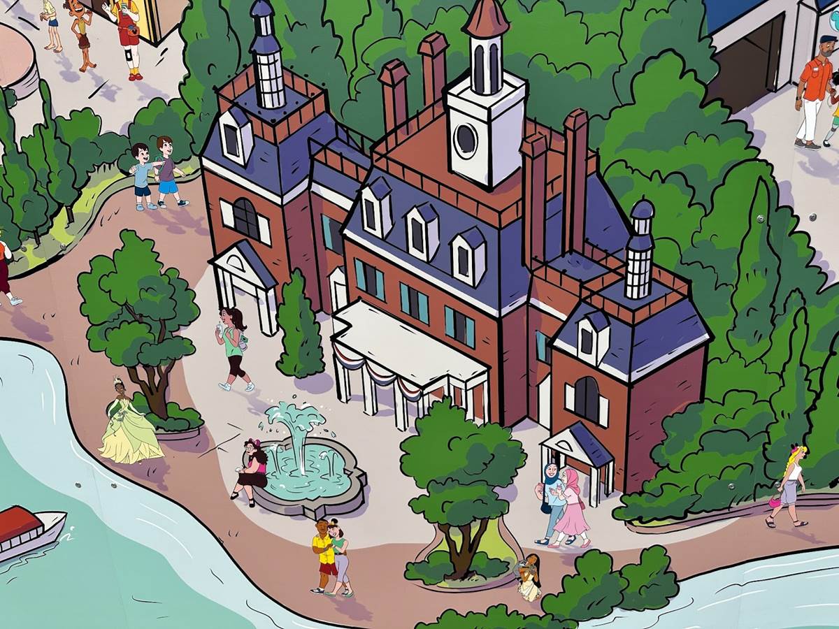 Pocahontas, Meeko and Tiana are in The American Adventure.