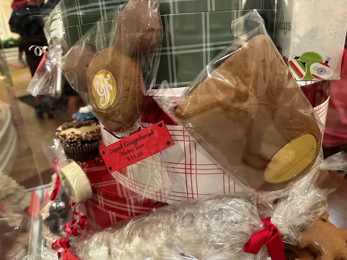 - Freshly baked, homemade items, such as Gingerbread Mickeys and Shingles, Stollen Bread, Brownie Christmas Tree, and Gingersnap Cookies