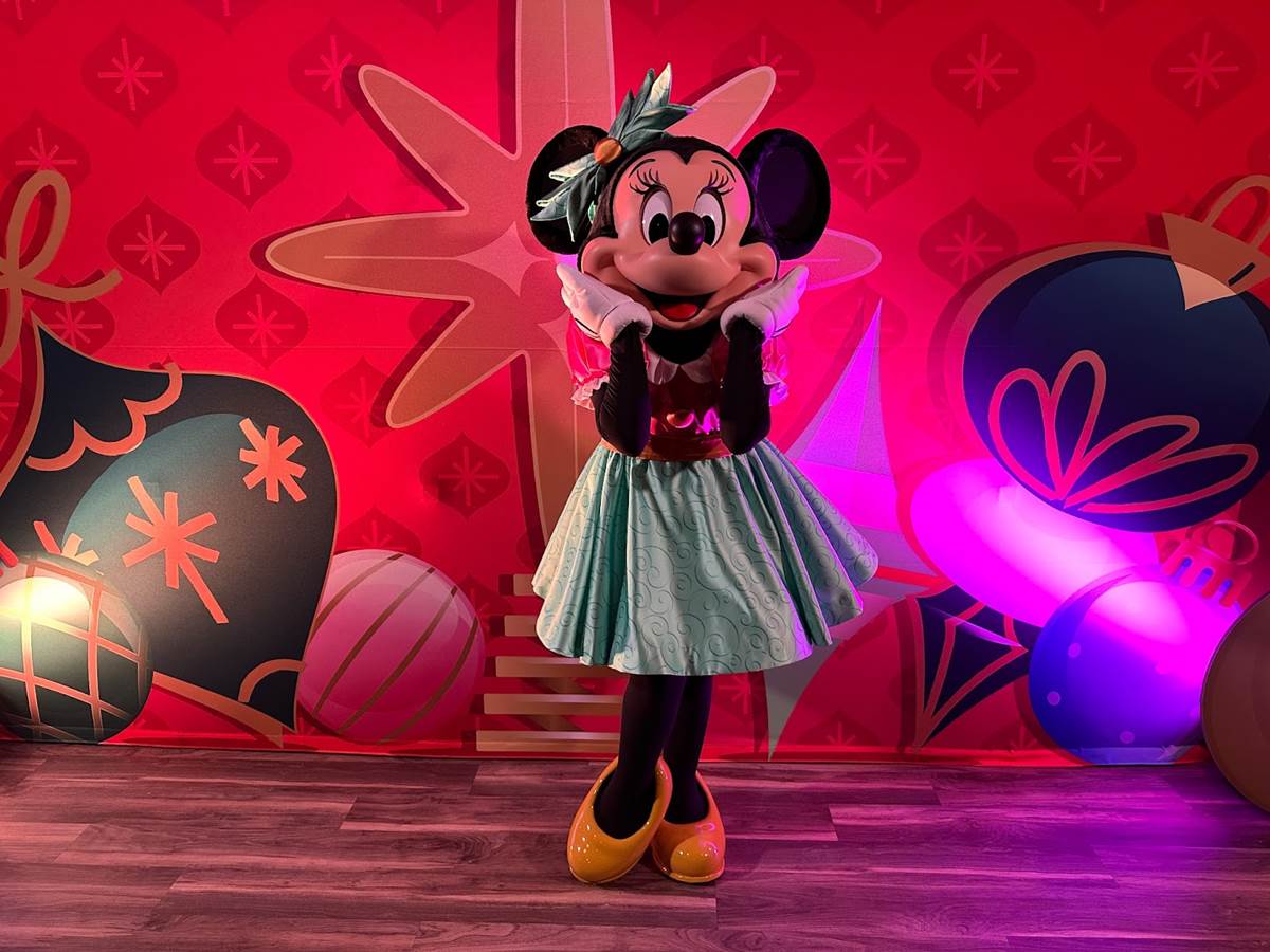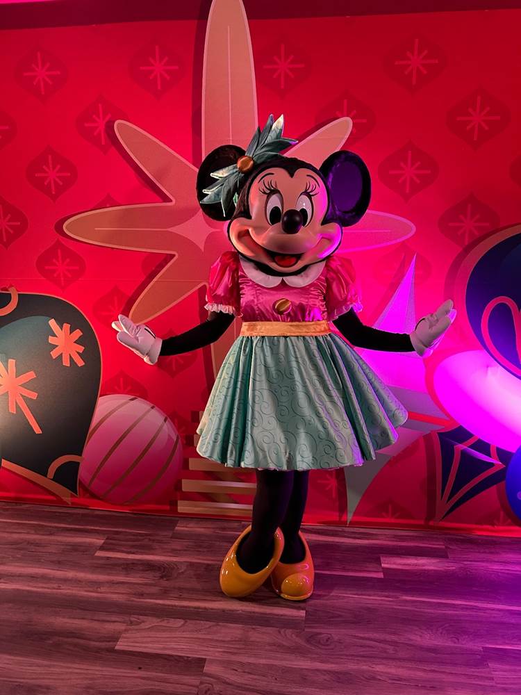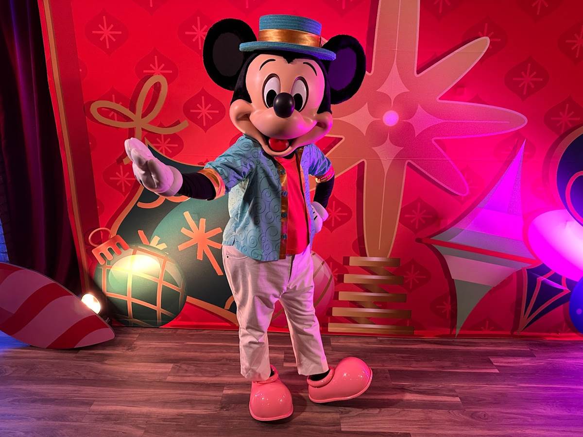 - Art directors, show producers and designers worked together to land on just the right combination of colors and fabric for these special looks. Delve into any old collection of ornaments from the ‘30s, ‘40s or ‘50s, and you’re sure to find an array of colorful pastels. And that’s exactly what we see here! Mint green and soft reds in sumptuous fabrics set the tone as you encounter Mickey & Friends Holiday Greetings in Animation Courtyard. The gang has just wrapped on the set of their new holiday film, and you’re invited to catch a glimpse of the magic!