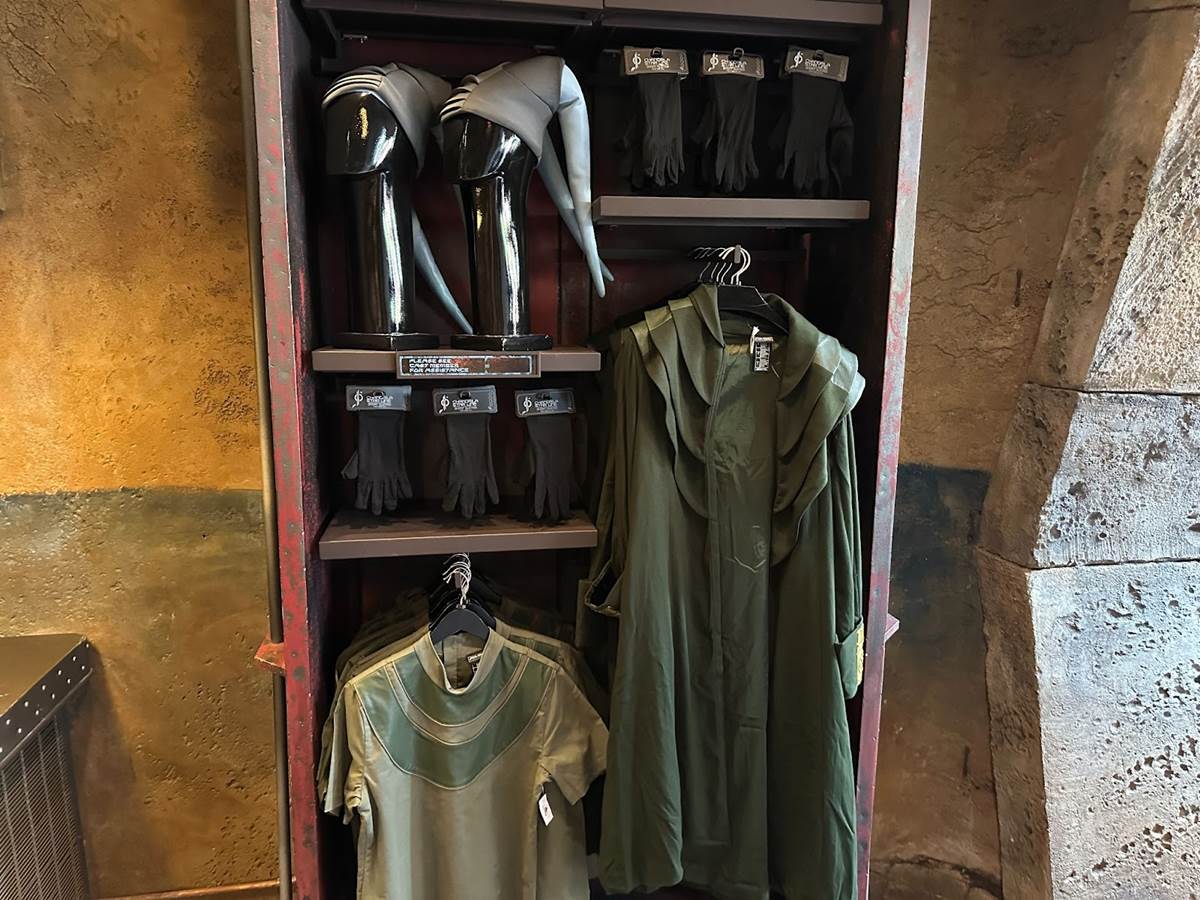 - All kinds of costume apparel and accessories was available in this shop, found in the marketplace area of Star Wars: Galaxy’s Edge.