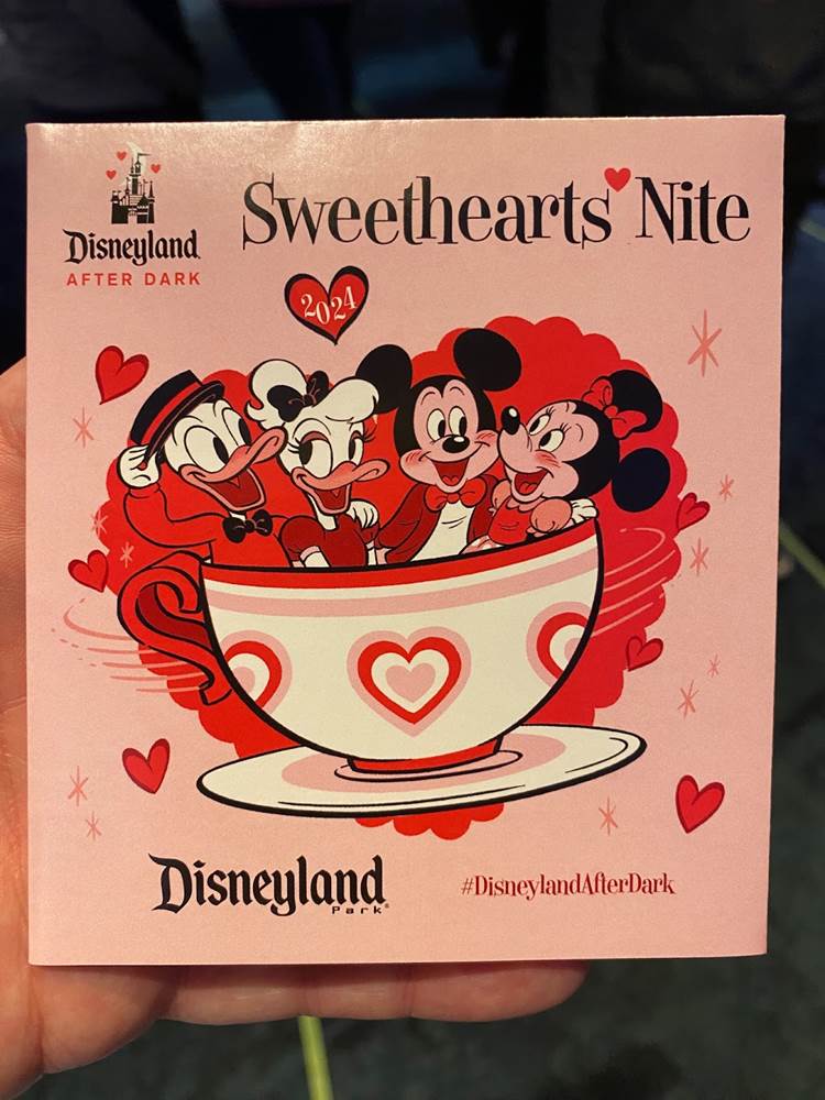 Love was in the air tonight at Disneyland, during the first Sweethearts’ Nite of 2024, as part of the ongoing Disneyland After Dark after-hours ticketed event series. We’ll begin our Sweethearts’ Nite coverage with a look at the event credentials, as well as special merchandise and food offerings.