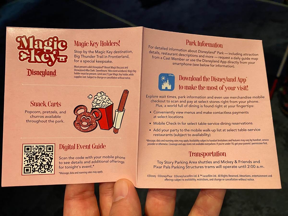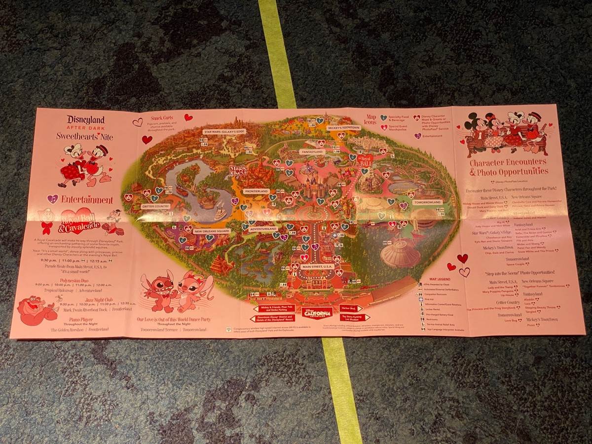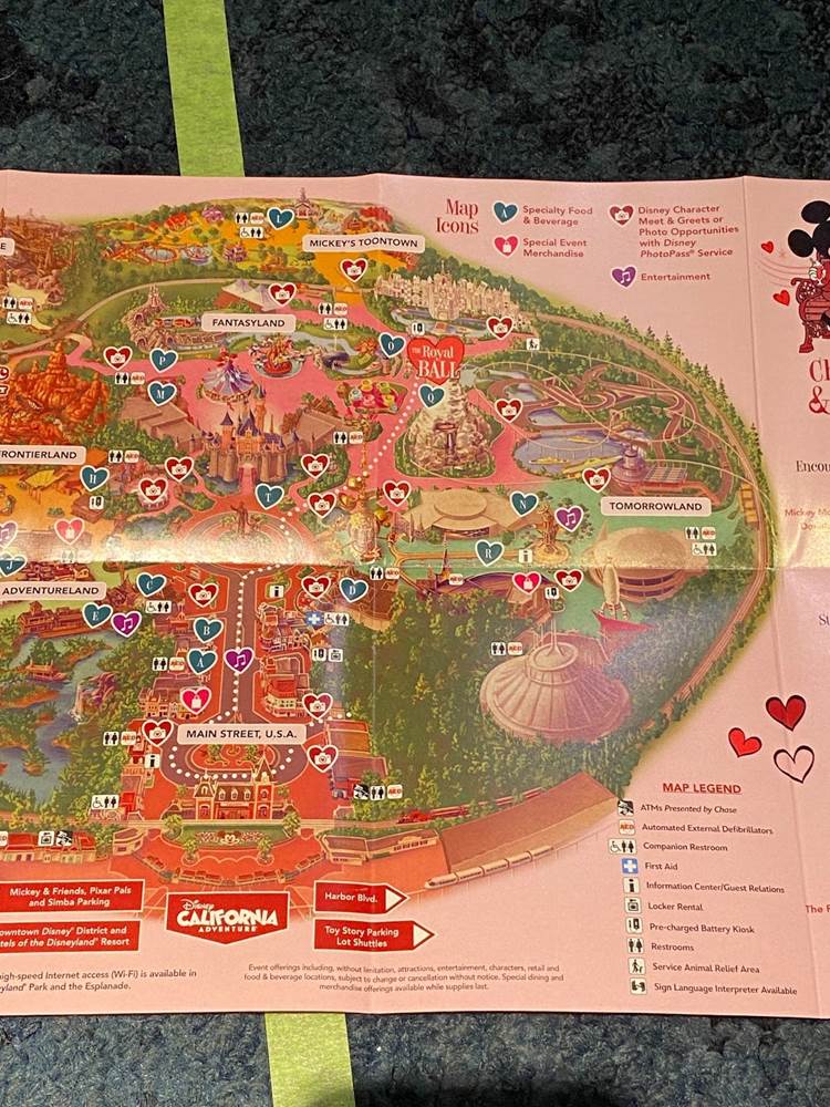 Inside, the map of Disneyland Park notes what attractions are open, along with special entertainment and character encounters.