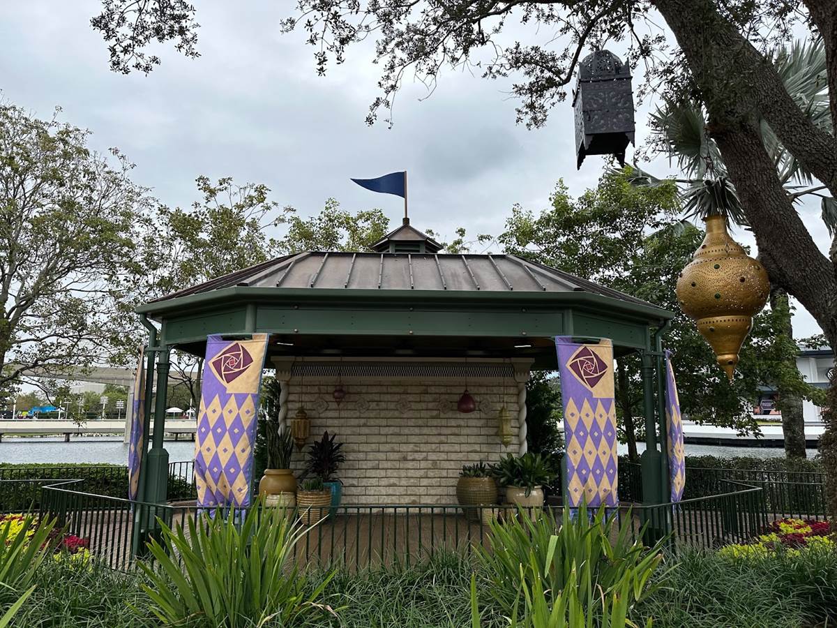 The gazebo has been decorated with some minimal items and banners from the Kingdom of Rosas.