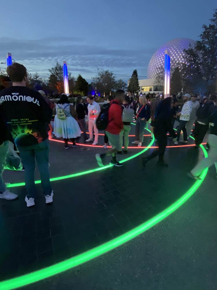 Fans of the old illuminated walkways outside the former Innoventions will be pleased, as the EPCOT logo lights up beautifully at night.