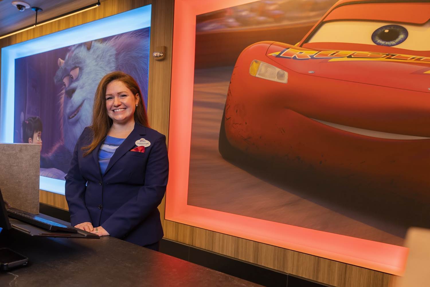 This idea continues right into the lobby, where guests will be surrounded by unique art and displays from the various films in the Pixar Animation Studios catalog. At the front desk, guests will be greeted by Cast Members wearing costumes that feature strips of color, with the idea that the color is what helps the film come to life from start to finish, much like how guests rely on the front desk cast to interact throughout their stay, from the first greeting to the final farewell after check-out.