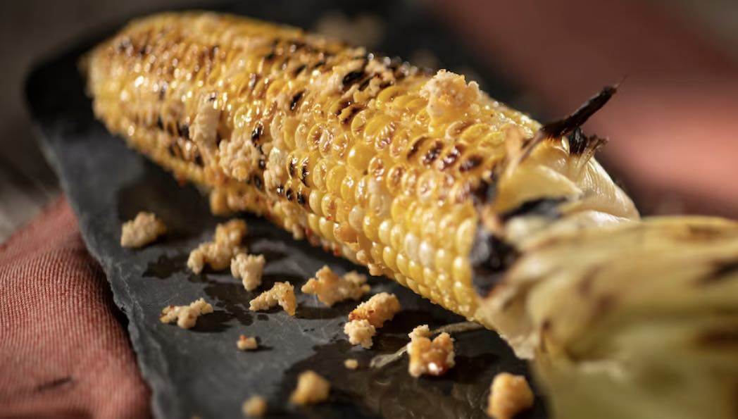 - Grilled Street Corn on the Cob with savory garlic spread and plant-based cotija cheese (Garden Graze)