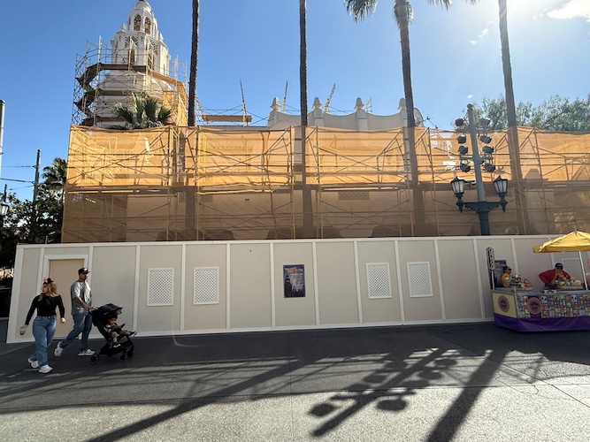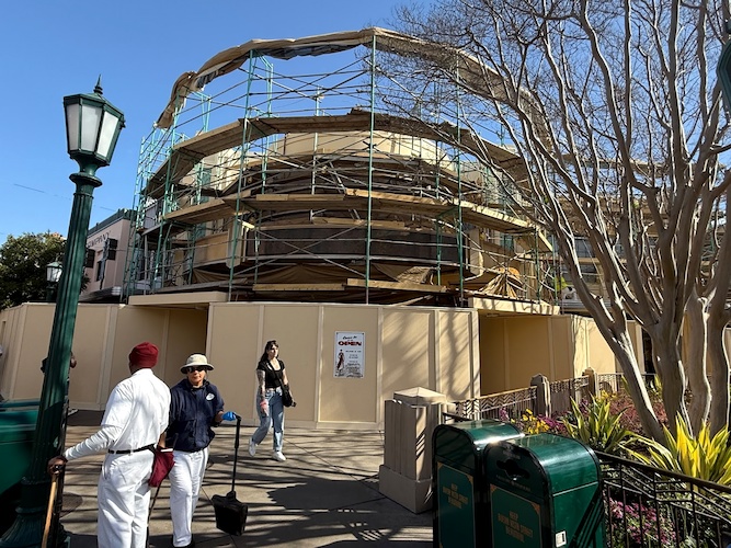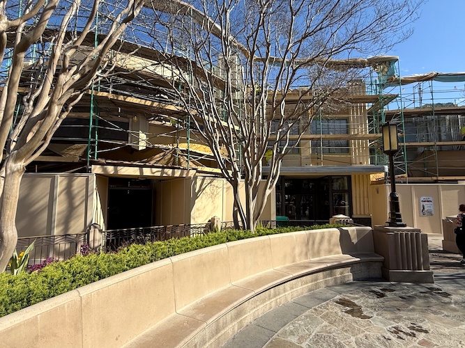 Also currently covered in scaffolding and tarps is the Carthay Circle Restaurant. As with the stores, the restaurant remains open to patrons at this time.
