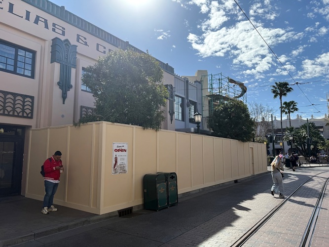 Before coming across walls, however, you’ll encounter an old favorite in a new form – the Red Car Trolley! After closing permanently on February 8th, Trolley 717 has been permanently parked at the former Buena Vista Street station for the attraction – allowing guests to at least take a photo with the iconic mode of transportation.