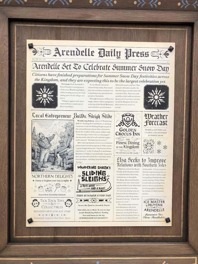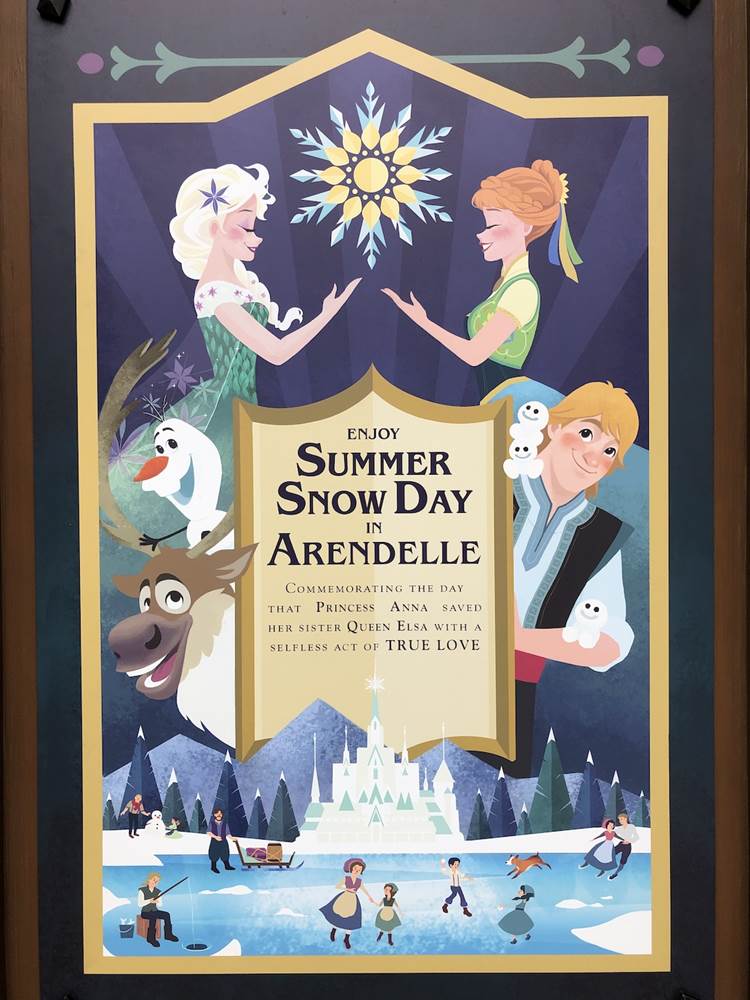 There are two entrances to the land, the main path in Fantasyland across from Dumbo, and a side entry near “it’s a small world" though the best experience is definitely coming through the main “gates." As guests approach the land they’ll be greeted by signs celebrating “Summer Snow Day" in Arendelle and they’ll hear the sentiment from nearly every character, resident and Cast Member they encounter.