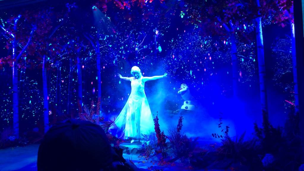 The gentle boat ride hits on a few highlights from Frozen starting with Olaf and Sven and then the Trolls telling the story of Elsa and Anna.