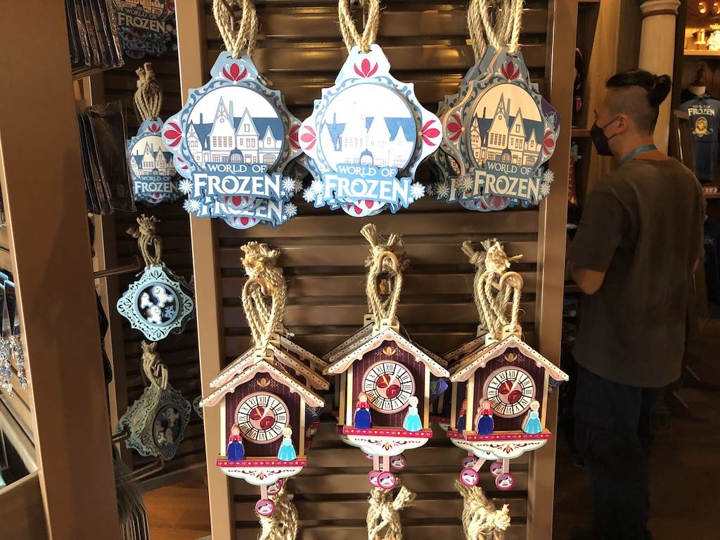 Arendelle has three shopping locations in total: two stores and one outdoor merchandise cart. The most interesting of the bunch is Tick Tock Toys & Collectibles, the exit gift shop for Frozen Ever After that’s full of apparel and yes, toys! At the front of the land is Northern Delights, a hybrid gift and pastry shop selling kitchen goods and sweet snacks; and the merchandise cart is located across from Playhouse in the Woods.