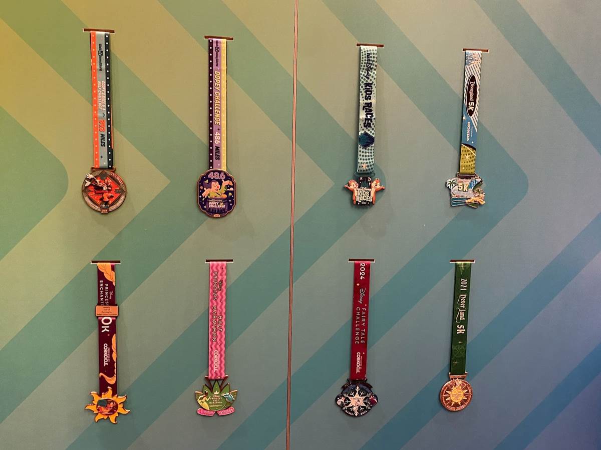 Along one wall was a display of a variety of attractive runDisney medals one could attain by participating in the races.
