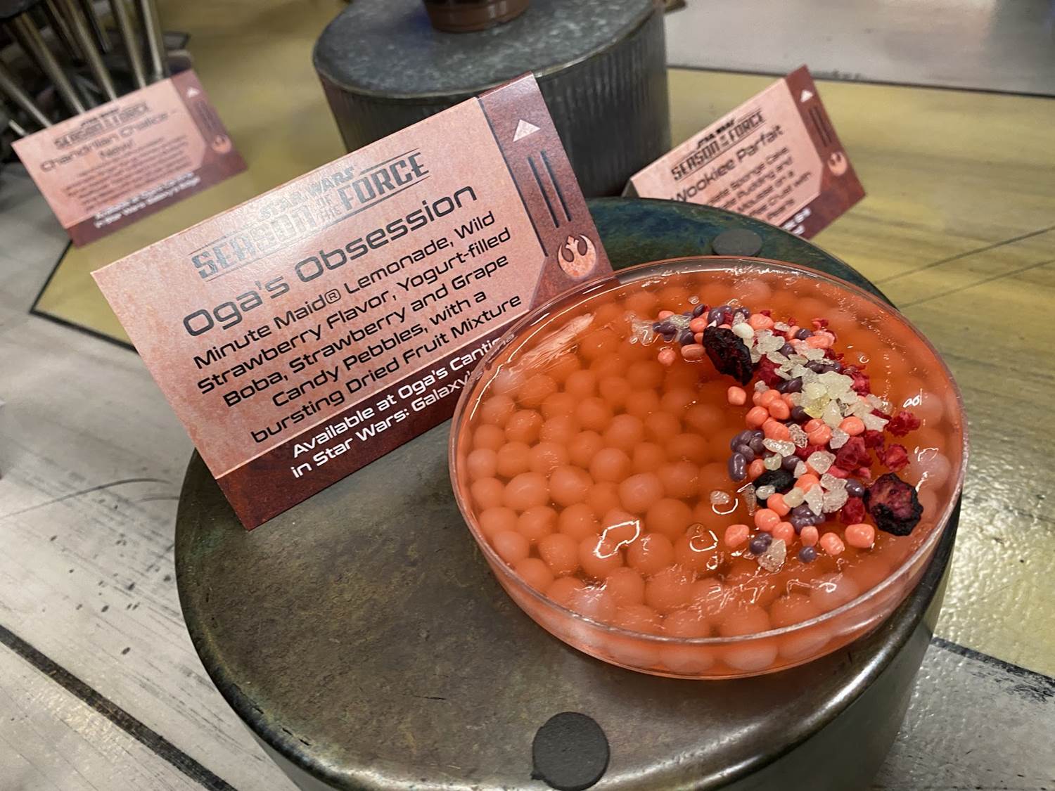 - Oga’s Obsession: Minute Maid Lemonade, wild strawberry flavor, yogurt-filled boba, and strawberry and grape candy pebbles with a bursting dried fruit mixture