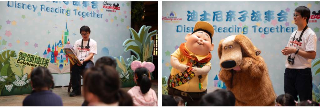 - Cast members have also been celebrating Earth Month in the community through a wide variety of nature-themed events and activities, including Disney Reading Together sessions and five Disney VoluntEARS activities. A nature-themed Disney Reading Together session was hosted on April 20, attended by over 50 children and their families at Shanghai Disneyland. Dr. He Xin, a long-time collaborator with Shanghai Disney Resort for its bird-watching program, and a senior member of the Shanghai Wild Bird Society and Research Fellow at the Shanghai Natural History Museum, told the story of the Pixar Animation Studios film Up, in which Carl and Russell, a Wilderness Explorer, along with their friends Dug the golden retriever and the large exotic bird Kevin, embark on a trip to Paradise Falls.