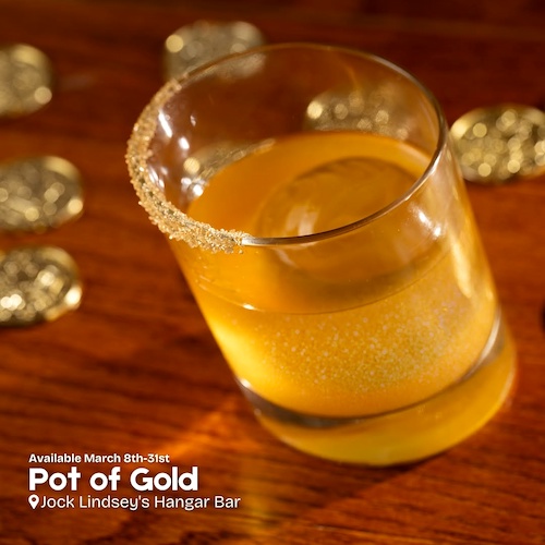 - Pot of Gold: Jameson Irish Whiskey, lemon juice, honey syrup, and shimmer with a garnish – available March 8th-31st at Jock Lindsey’s Hangar Bar in Disney Springs