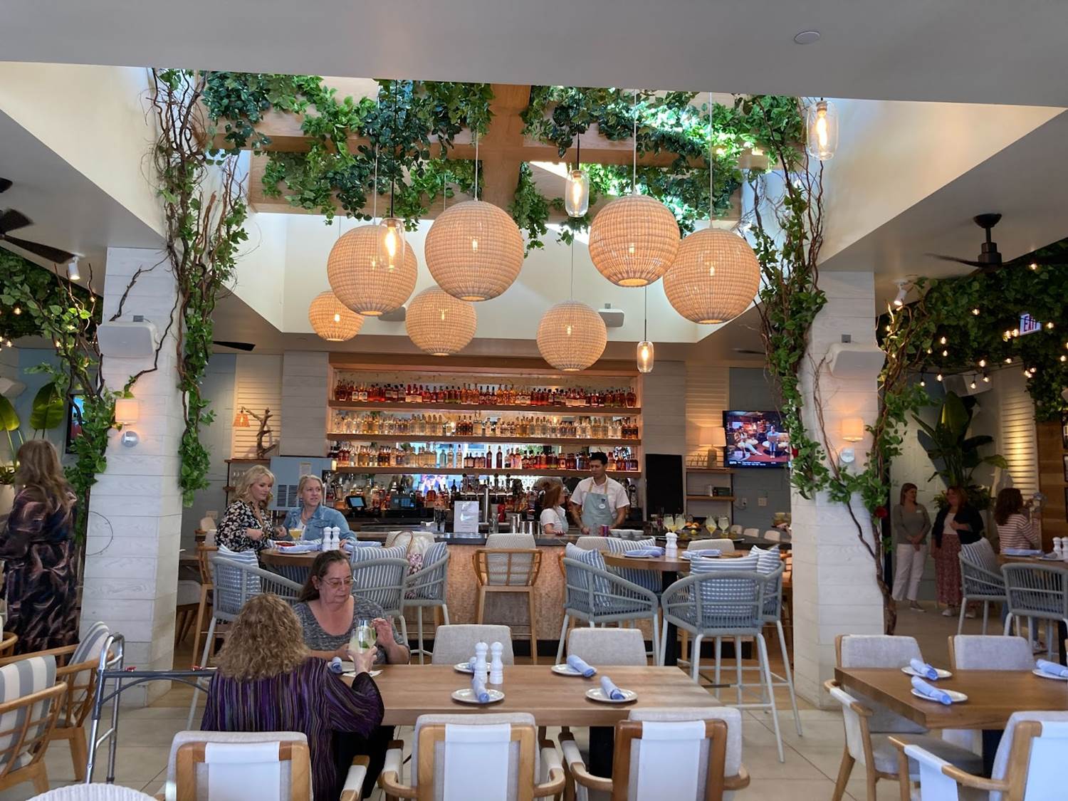 There are also multiple bars throughout the restaurant, where guests can enjoy specialty cocktails, zero proof cocktails and Summer House’s own Rosé. Our favorites were the Summer Old Fashioned and, for the zero proof options, the Waitlist, which consists of sparkling elderflower, rose and lemonade.