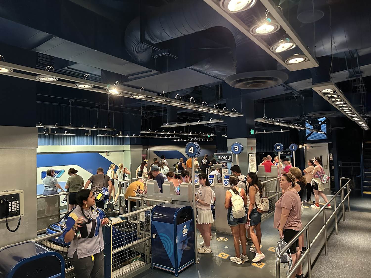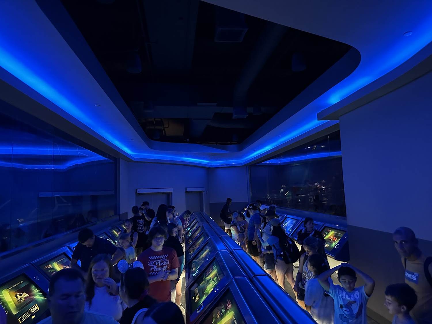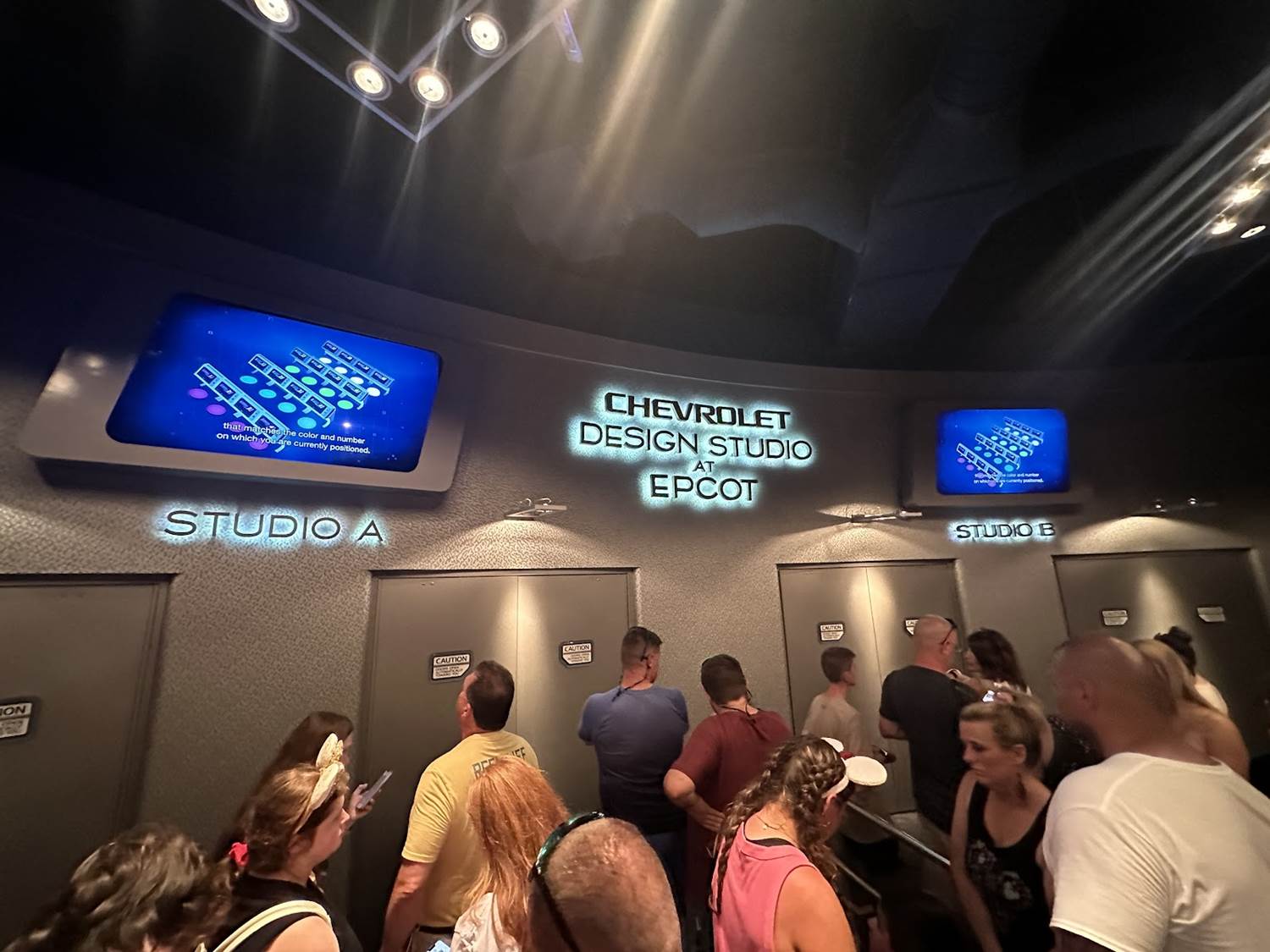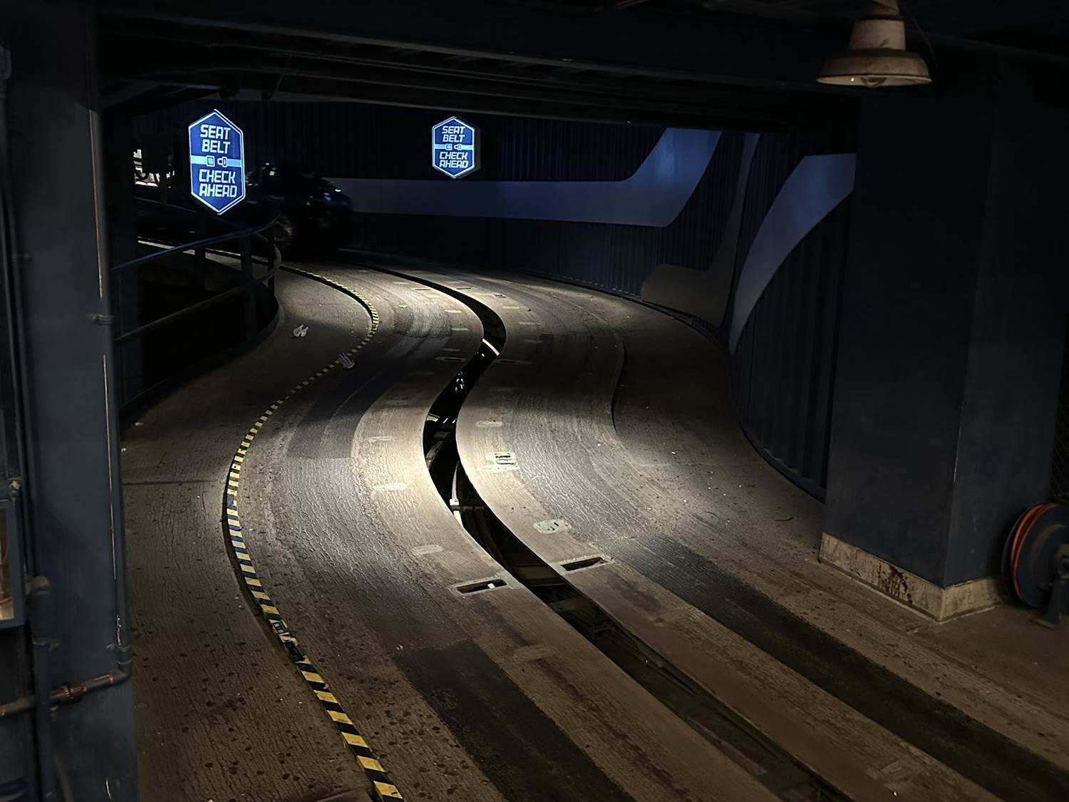 The preshow experience was the most changed, going from a winding queue passing all the various tests a car might be pushed through and a small screening room where the test team would show off what trials you and your vehicle will go through on the attraction - turning the experience into how cars are virtually designed and inviting guests so design their own car, which is loaded into the Sim Car on the Sim Track.