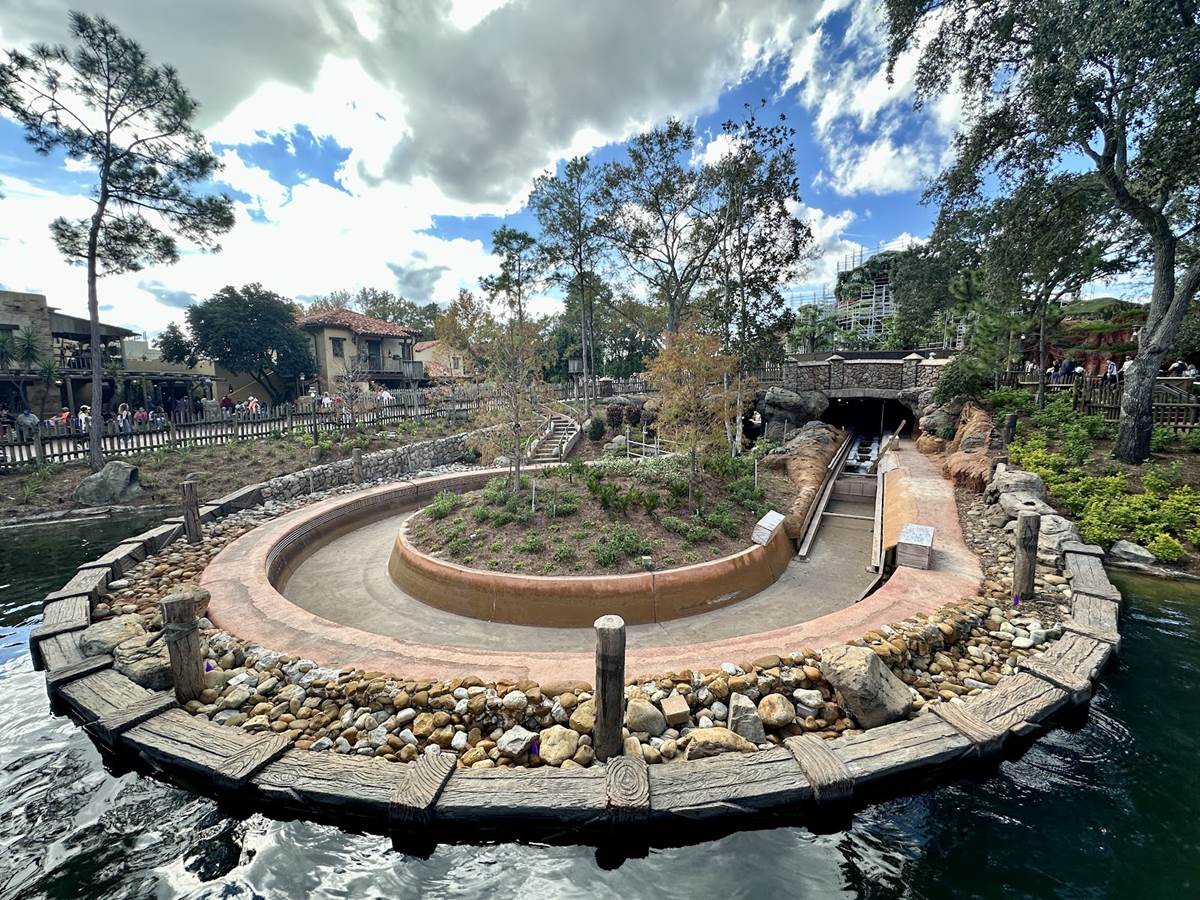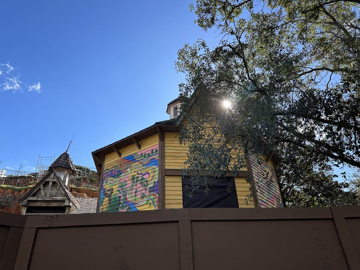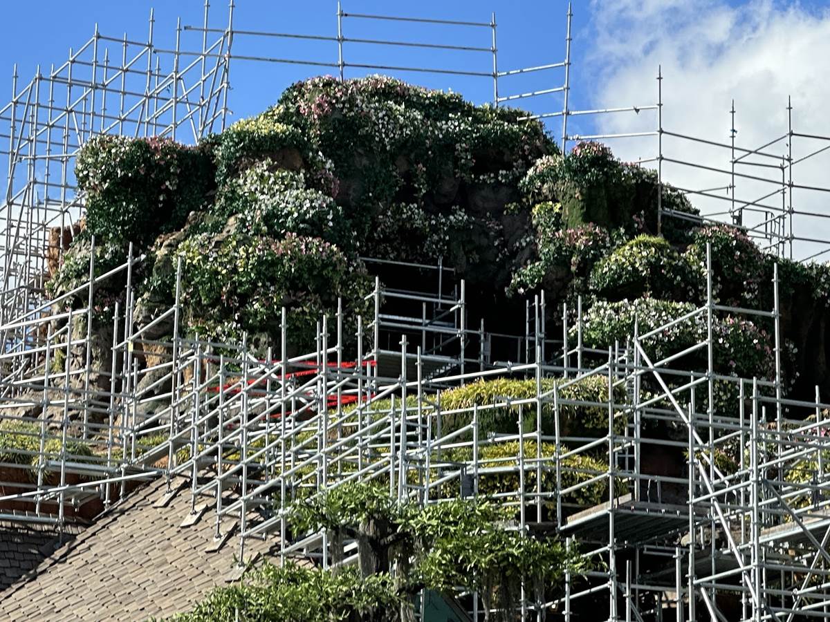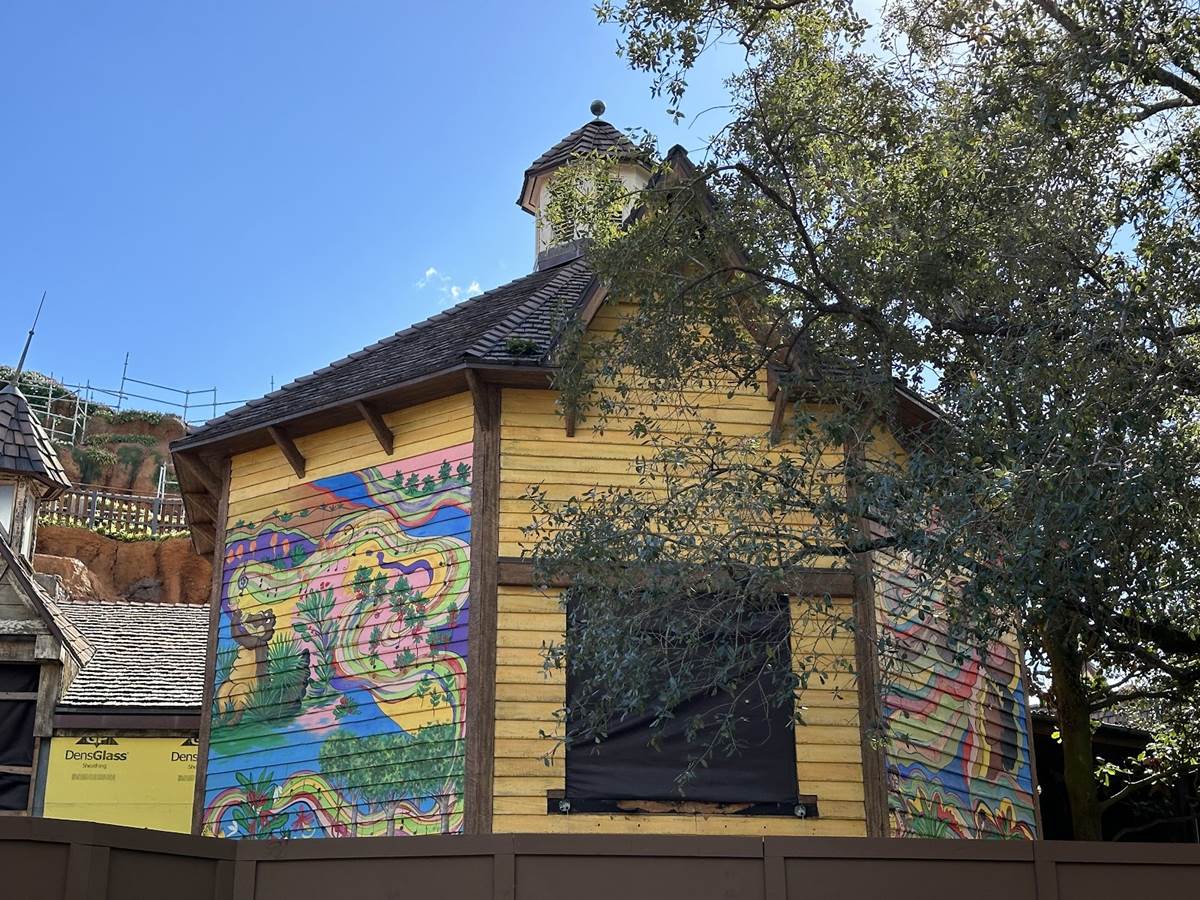 Fans familiar with the former attraction will surely notice the transformation from a dry, barren, Briar Patch, into a very lush and green hillside. While that is the most visible addition going on on the mountain, workers can be seen most hours of the day working on the new attraction, so work is clearly going on inside the mountain as well.