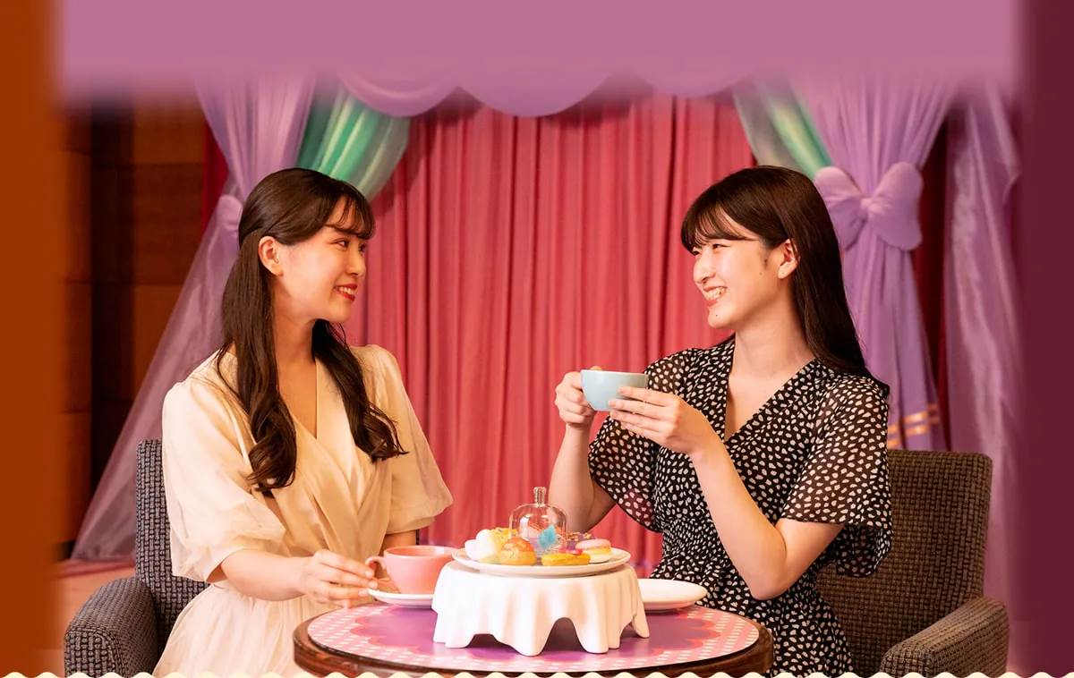 - The pajama party includes a dessert plate that comes with decaffeinated tea, which guests can enjoy while waiting for the character greeting. This plate features confectioneries based on Minnie’s bow, as well as other adorable items such as donuts and macarons in pastel hues. - Guests will be served one plate per room, regardless of the number of guests staying.