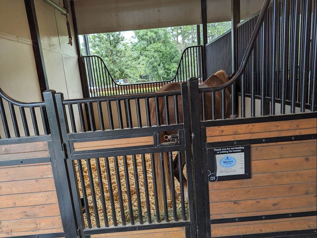 The original Tri-Circle-D Ranch was built before the grand opening of Walt Disney World in 1971 to fulfill Walt Disney’s dream of having horses at the Magic Kingdom. The new barn is twice the size of the original and includes larger stalls for the horses equipped with automatic water stations, a wedding harness room for Cinderella’s ponies. The new Tri-Circle-D Ranch is located near the bus loop by Pioneer Hall.