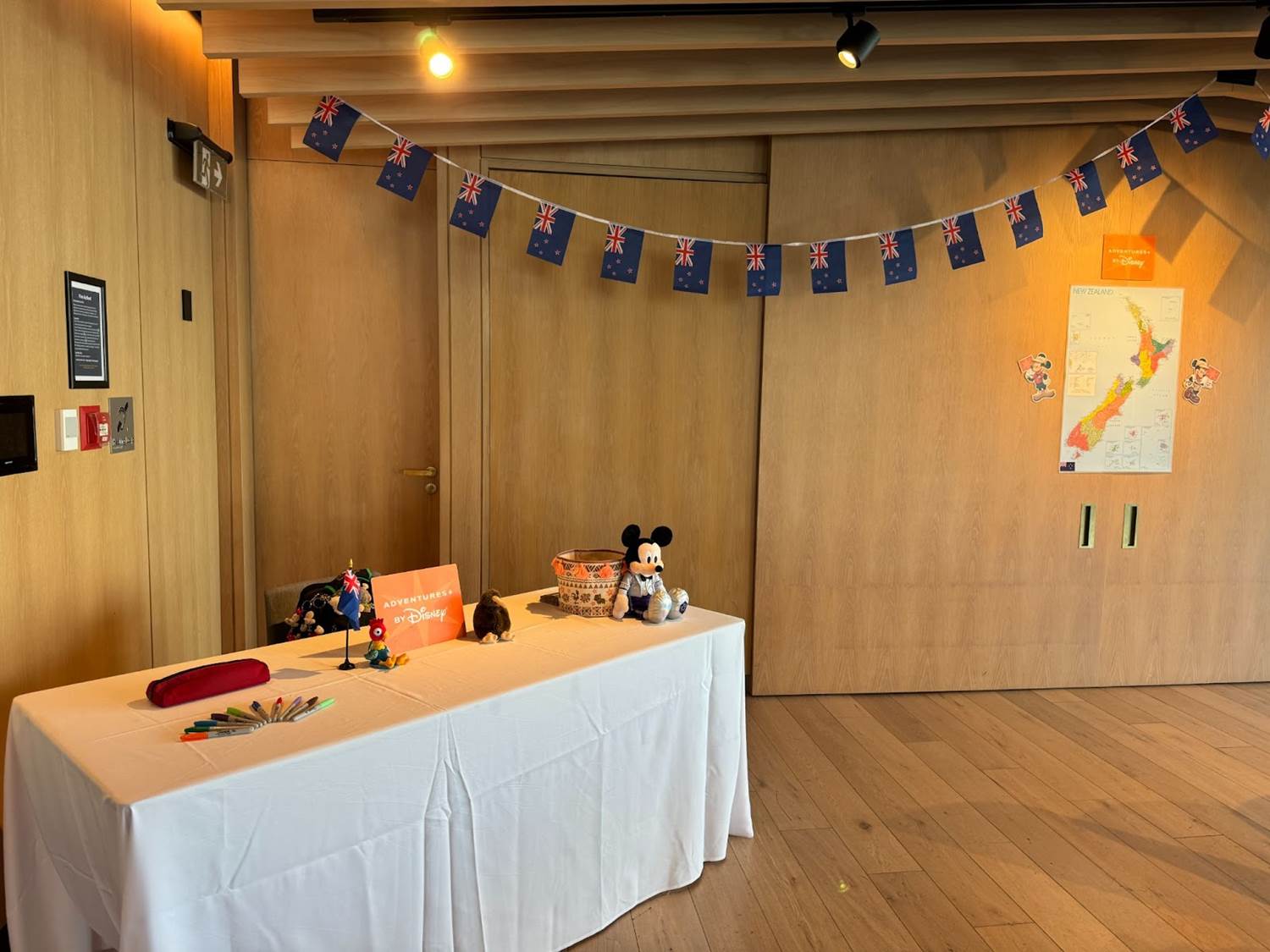 A map of New Zealand was hung on the wall, which served as a visual aid once dinner began. Local Guide Danny walked everyone through the twelve-day itinerary, building up excitement for each destination and activity. This catered dinner at the hotel was served family style and included three types of salad as an appetizer, three types of meat for the entree (lamb leg, pork belly, salmon), each of which had their own side. And the meal was capped off with a trio of delicious desserts. Speaking of dietary restrictions, we have a member of our group who is a pescatarian with a strawberry allergy, so when the three entrees arrived, they received an additional plate of falafel. Instead of sharing off the dessert platter, they were given their own trio of desserts, with a substitute for the strawberry tart they couldn’t have. It’s just one of the ways the Adventures by Disney Guides go above and beyond to cater to each Guest’s unique needs.