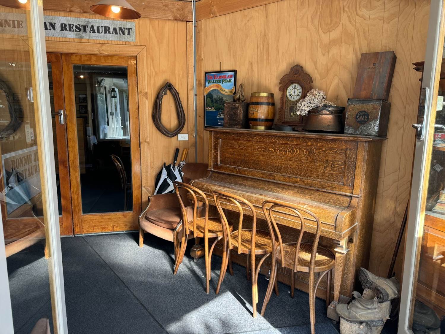 The two-hour jet boat ride left us with some free time before lunch. Glenorchy is home to several charming shops and cafes and lots of nice beach areas to explore around the lake. There was also an exhibit inside the historic Wharf Shed, where old steamer ships used to dock to unload deliveries that were transferred to the railroad, primarily during the gold rush.