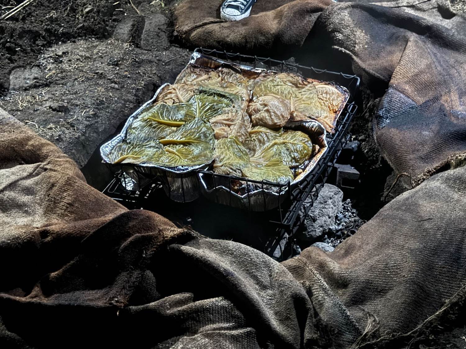 Prior to our arrival, a bonfire was used to heat hot stones in the ground, a preparation technique called Hāngī. A variety of foods, including chicken, lamb, fish, sweet corn, and potatoes, were placed in foil pans over the rocks and covered with protective layers of cabbage and cloth, with dirt covering those to lock in the heat and allow dinner to cook. We got to witness our meal being pulled out of the earth, following it to the wharekai for a fabulous feast.