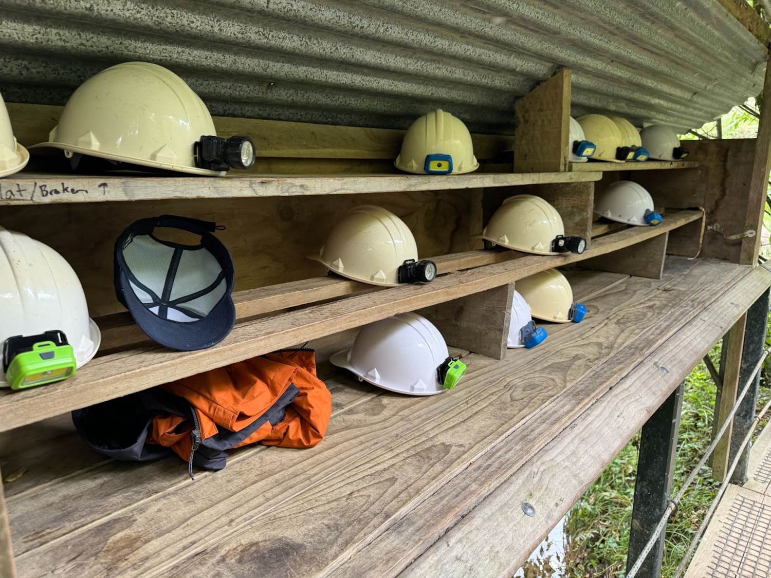The Spirit Cave was an all-walking experience, with lighted paths and high ceilings. But the second cave, fittingly called the Spellbound Glowworm Cave, featured some low-hanging stalactites. Due to the level of darkness preferred by glowworms, the main source of light up to a certain point was provided by necessary hard hats, which we put on before entering.