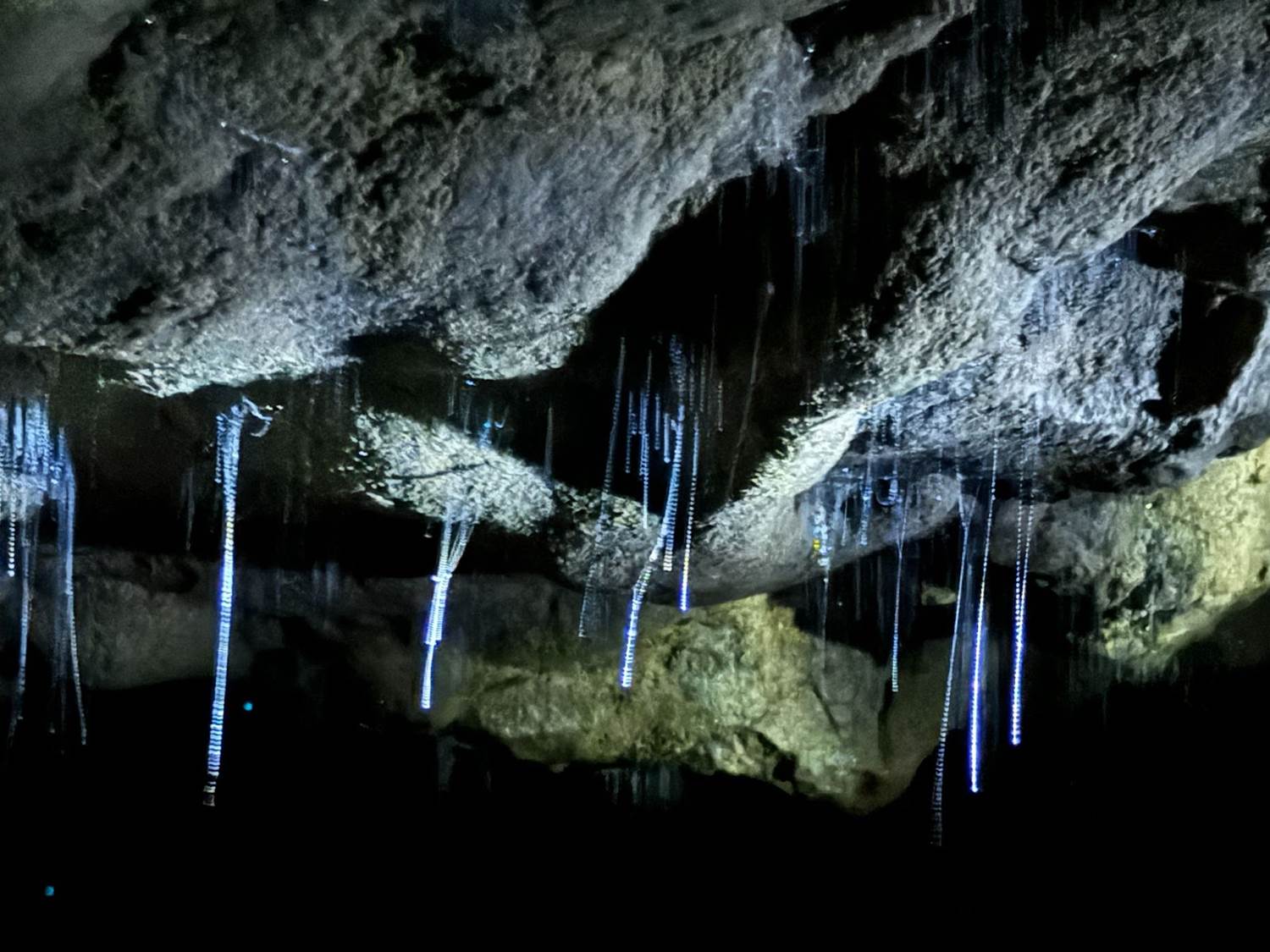 This cave is home to an underground river, the preferred habitat for glowworms. Once we were deep enough that natural sunlight wasn’t an issue, it came time to turn our lights off and let our eyes adjust to the dark.