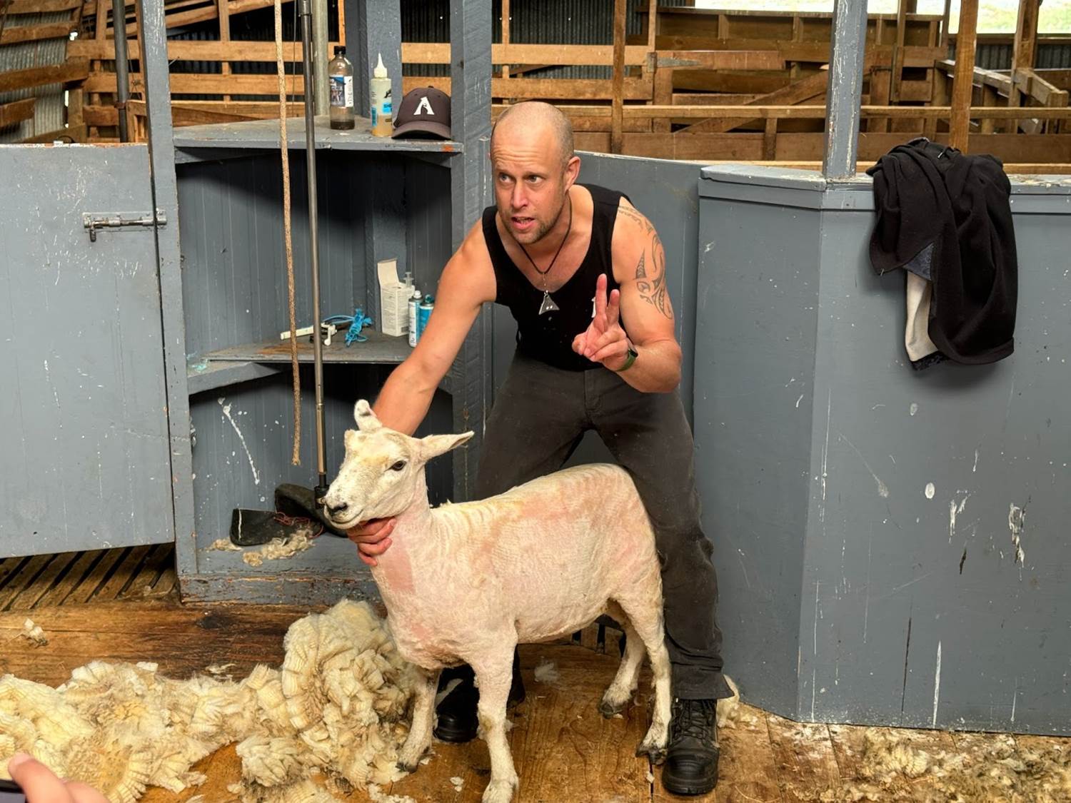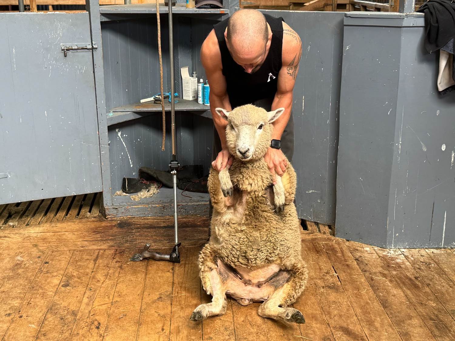 Our tour guide then gave us a demonstration of sheep sheering. Romney sheep wool is primarily used to make carpet and rugs, and sheering sheep helps them not only keep cool, but also prevents their wool from becoming a breeding ground for bugs. As a pawrent to two dogs who get groomed monthly, it was funny to see the similarities between this sheep’s reluctance to be groomed and that of my own fur babies. Before…