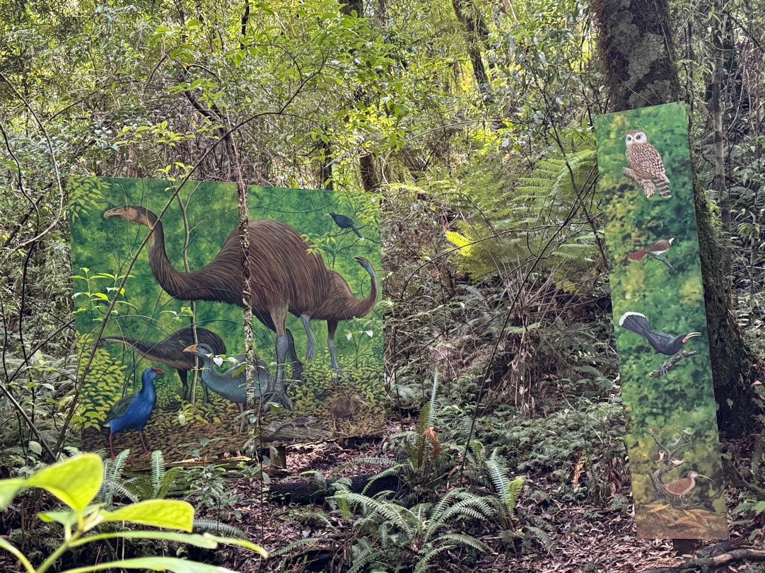 That line was also a great segue into the conservation part of the experience, since you step off a tree that is thousands of years old. It’s seed likely passed through an extinct species, the moa (see the Day 4 recap for more on these animals). An artist display of the birds that once called this forest home was on display.
