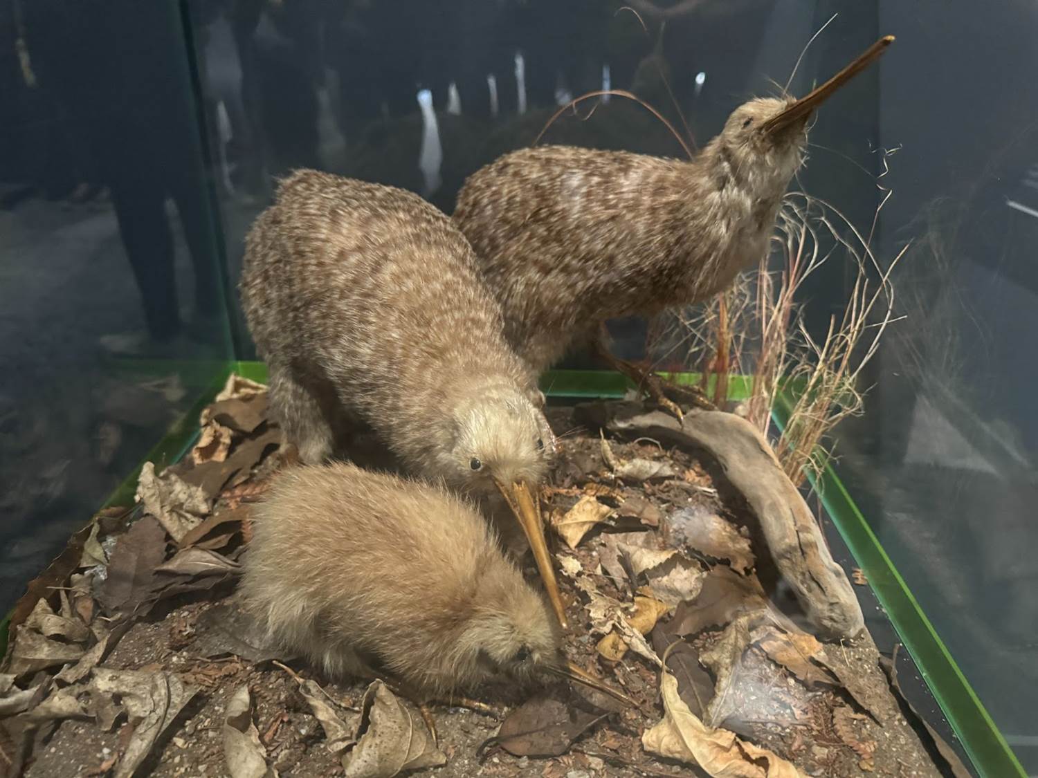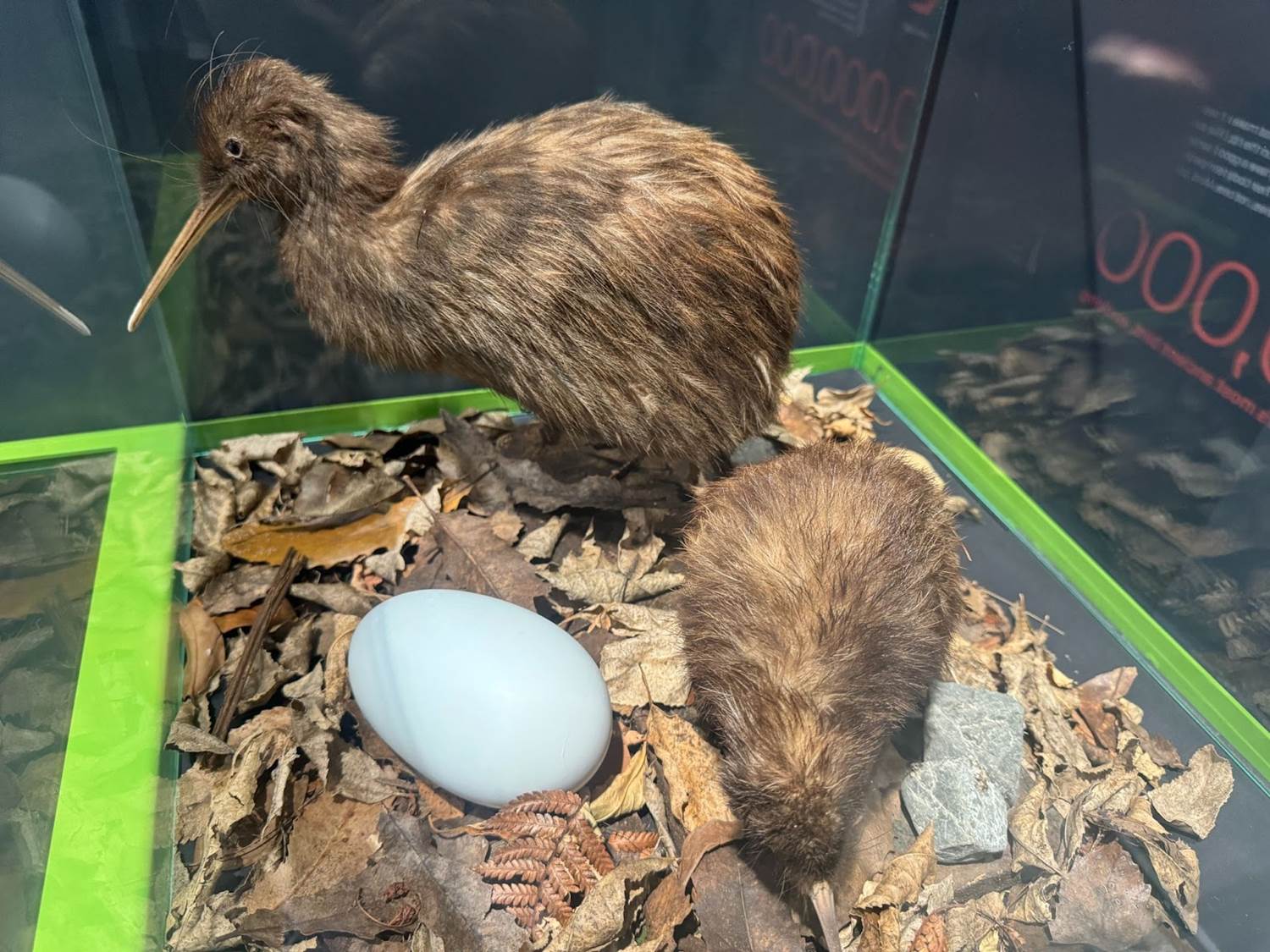 Our guided tour of the hatchery began with some taxidermied displays of the type of kiwi being preserved here - the Brown Kiwi. Display cases housed taxidermied examples of chicks at various stages in their life, plus an adult male and female.
