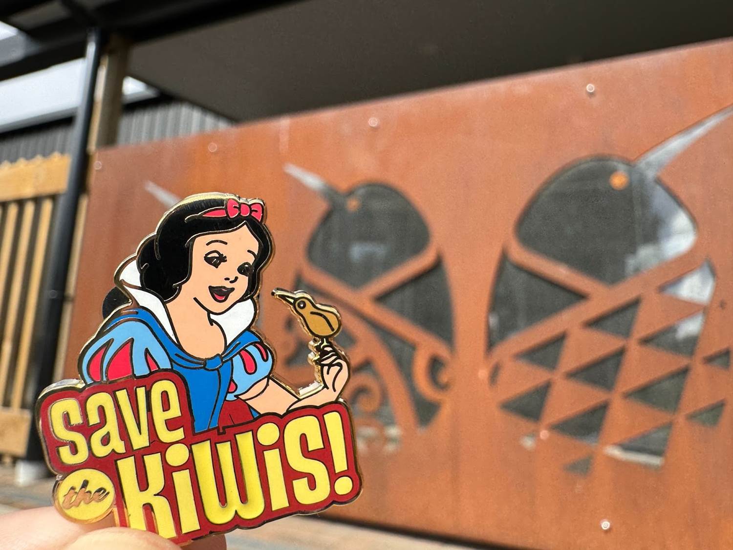 Before we boarded our bus, our tour guide from the hatchery ran out with a box to share that he had a kiwi we could meet. Opening the box, it ended up being the plush kiwi (named Kenai) that our Adventure Guides have used several times to distribute our pin of the day. It features Snow White with a friendly kiwi on her hand and features the title of the day’s adventure, “Save the Kiwis."