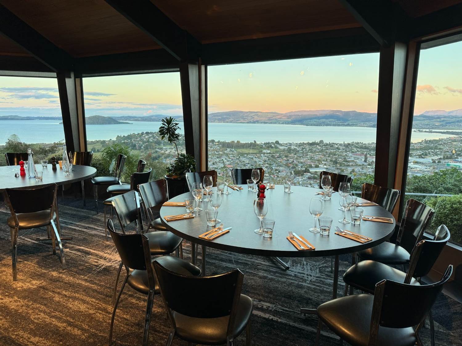 Dinner was an international buffet called the StratosFare, which offered something for everyone. But the real star of the show was the view of Rotorua, including Mokoia Island in the center of the lake from the tale of Hinemoa and Tūtānekai. It was the perfect place to see the sunset over a delicious meal and great company.