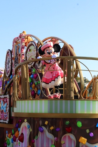 On another float, Mickey and his rock band will play candy instruments on top of a fruit tart shaped stage. Headlined by Minnie and Daisy, the pair will ride on a gallery themed float as they showcase candy creations.