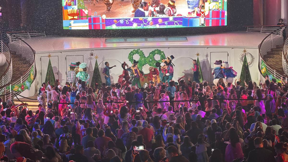 The new deck party is just one new experience, guests aboard Very Merrytime cruises can also head to their ship’s atrium on the first night, where guests will gather around the three-deck-tall tree for a new tree lighting ceremony. Mickey Mouse, Minnie Mouse and Goofy will invite guests to sing along to classic holiday tunes, followed by a countdown that will not only make the tree merry and bright, but will also introduce the guest of honor for the cruise, Santa Claus.