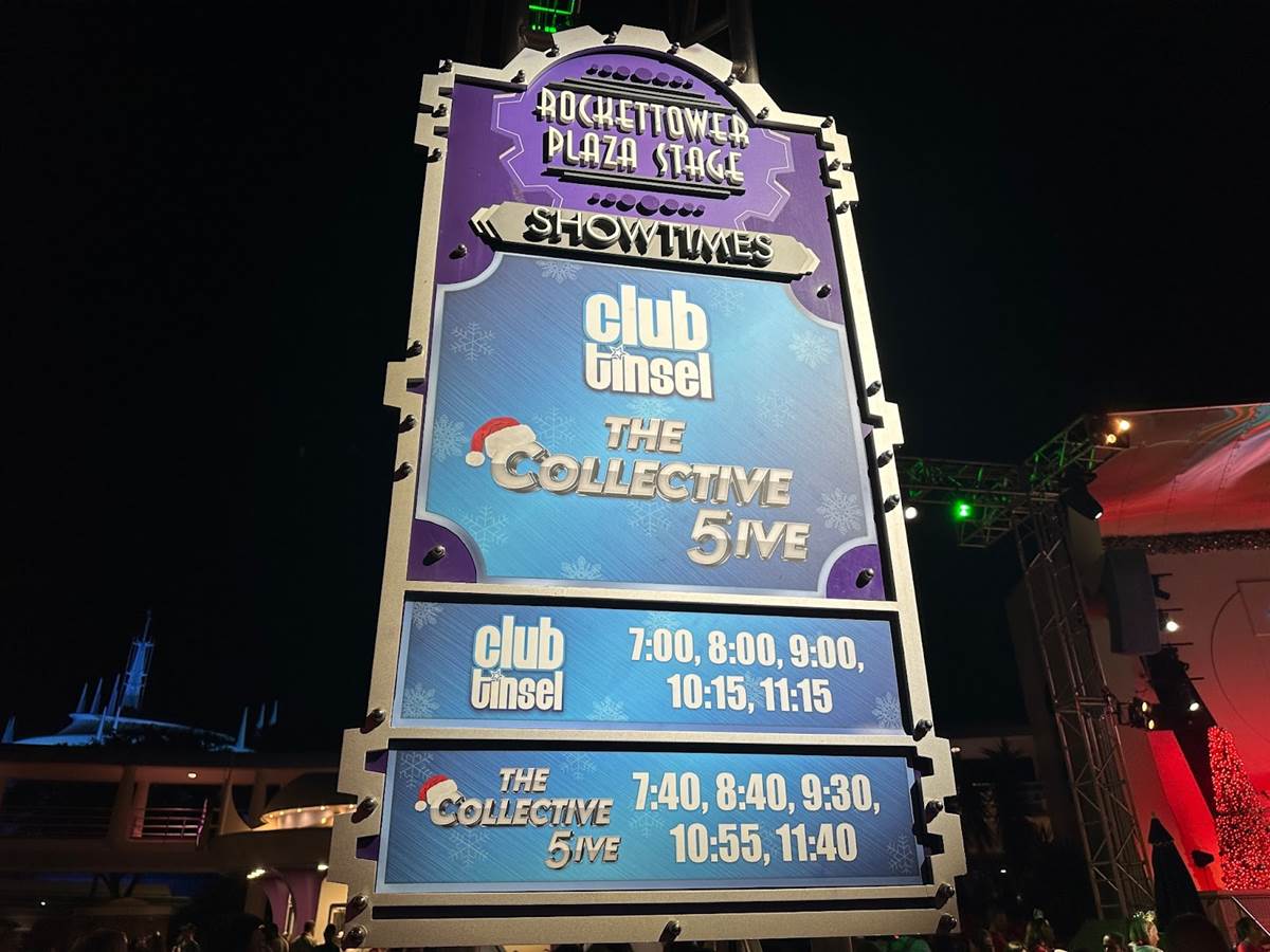 You can catch The Collective 5ive for yourself at the Rockettower Plaza Stage in Tomorrowland at the following times, only during Mickey’s Very Merry Christmas Party: