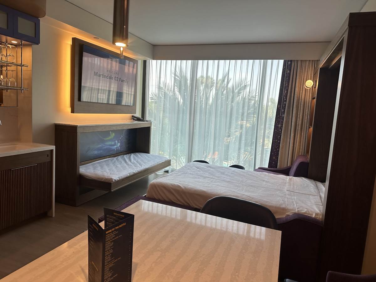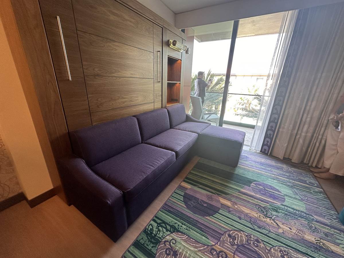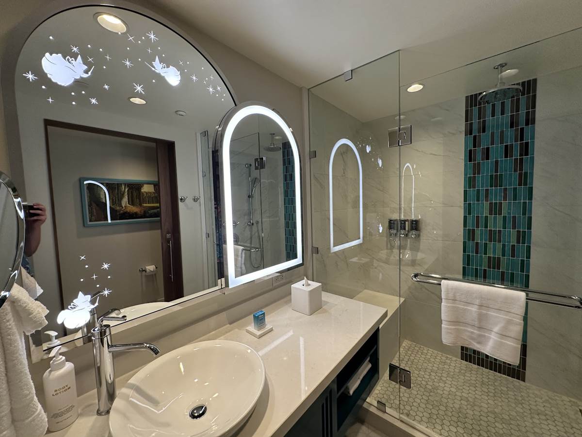 Perfect for two guests, the newly imagined duo studios are inspired by The Jungle Book featuring a split bathroom with themed tile accents and a queen-size bed that conveniently tucks into the wall to reveal a sofa when not in use. With enough space for up to four guests, the deluxe studios celebrate the timeless tales of Sleeping Beauty or The Princess and the Frog and feature a kitchenette, split bathroom and two queen-size beds to sleep up to four guests.