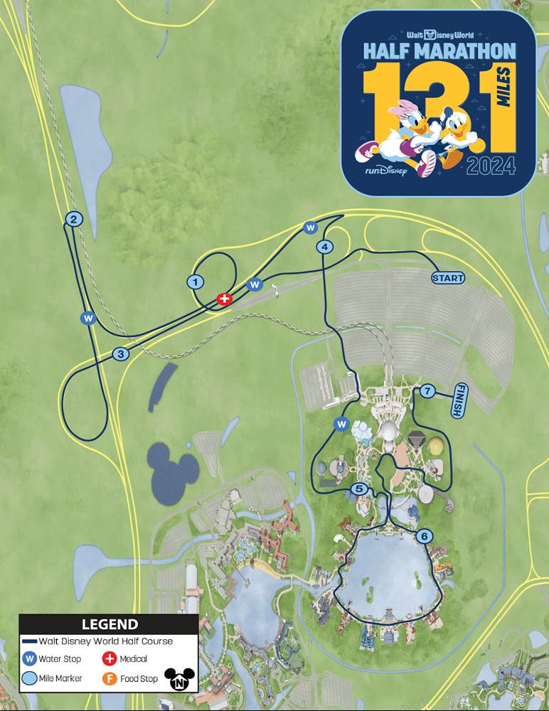 - Additionally, the course map will be cut approximately in half to accommodate the changes, from 13.1 miles to just over 7. The course will now stick to EPCOT and the surrounding area.