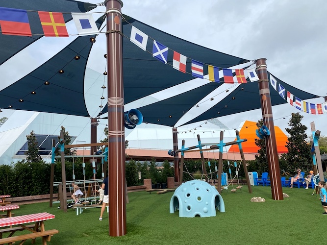 - The area also hosts picnic tables and standing tables, allowing families to rest and relax or enjoy some snacks from a few other Yacht & Beach Club-inspired offerings.