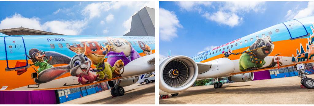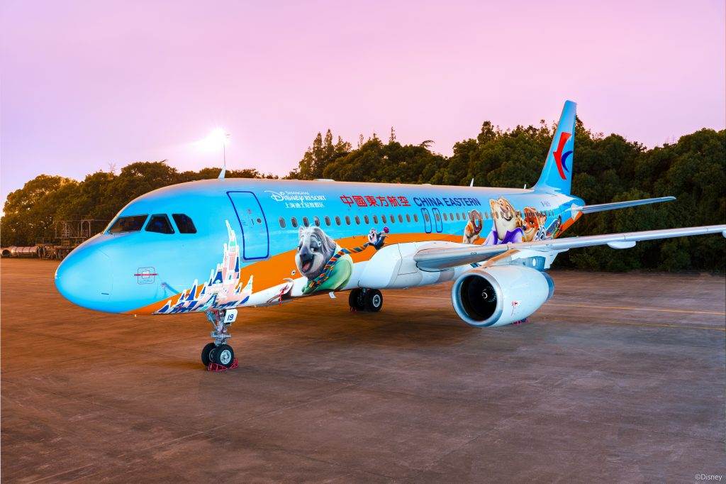 - As another great example of Disney’s signature storytelling, the airplane design will take to the skies the excitement of the new land’s opening through its vibrant overlay on the exterior, showing fan-favorite characters from the animated film, large and small. As it zooms across the sky, the Zootopia friends all become wind-swept from the speed of the plane. Through the innovative application of a custom aircraft livery decal, the Disney•Zootopia Express has now become China Eastern Airlines’ first Disney-themed aircraft to feature three-dimensional images of Disney characters on its exterior.