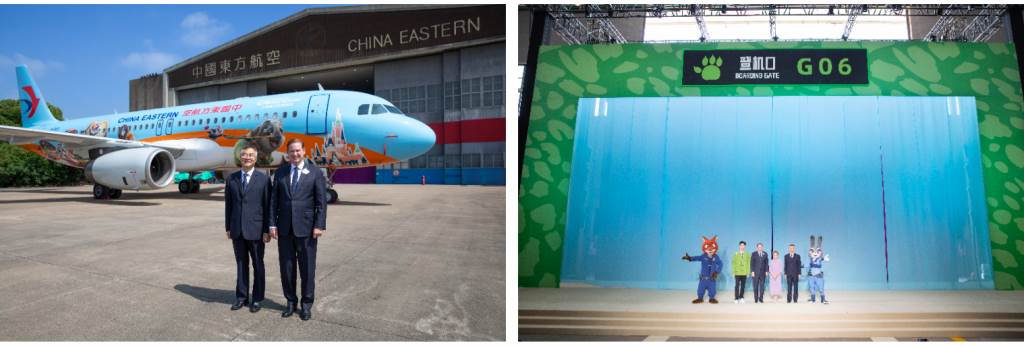 - To commemorate the arrival of the new aircraft, an unveiling ceremony was hosted at a specially-designed Zootopia-themed “airport" in Shanghai, where invited guests got a first look at the new Zootopia-themed experience. During the ceremony, executives from Shanghai Disney Resort and China Eastern Airlines were joined by Zootopia’s very own Judy Hopps and Nick Wilde, who helped to celebrate this special occasion and unveil the new themed plane.