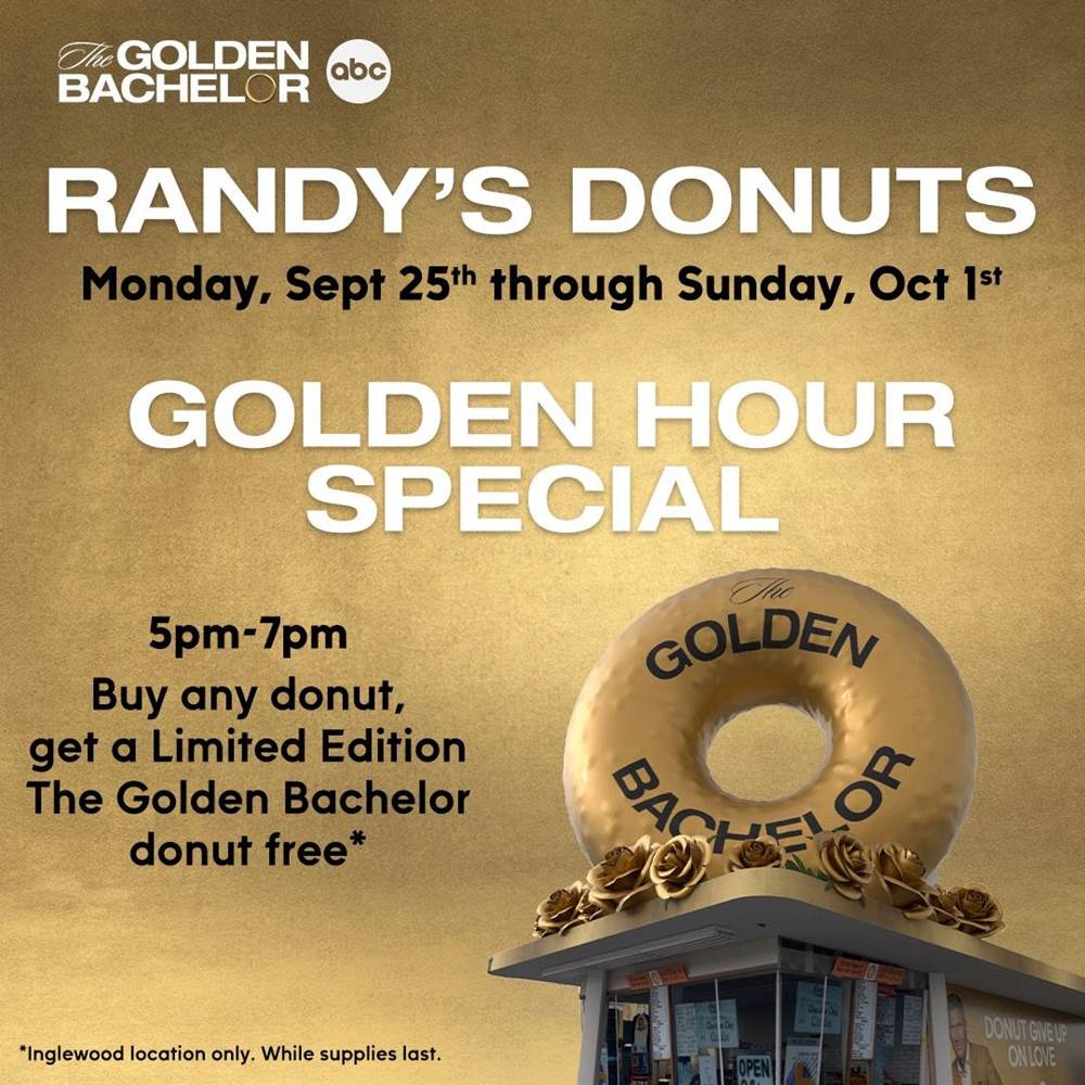 - ABC is turning the iconic 32-foot Randy's donut gold! For a limited time, Randy's Donuts in Inglewood, California will offer a limited-edition Golden donut, Golden Hour special from 5-7 p.m. daily and a 10% Golden Discount day-of premiere