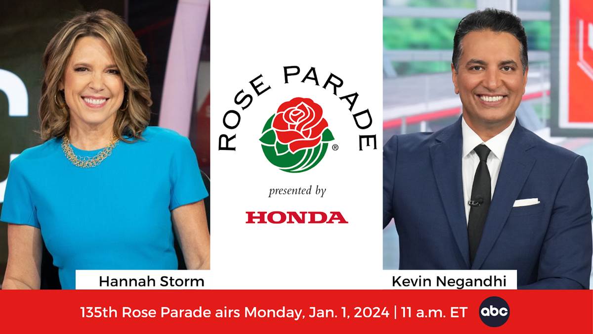 - For the ABC broadcast, SportsCenter anchors Hannah Storm and Kevin Negandhi return to co-host the 135th Rose Parade on ABC, with several enhancements for viewers at home:
