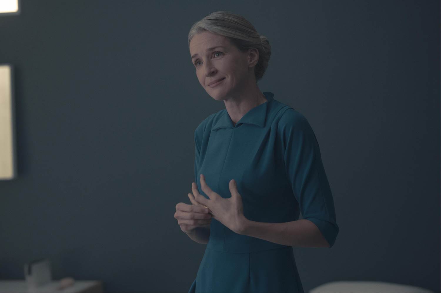 - She appeared in 20 episodes of the dystopian drama, who after being widowed, married Commander Lawrence (Bradley Whitford) in Season 5, taking his name.