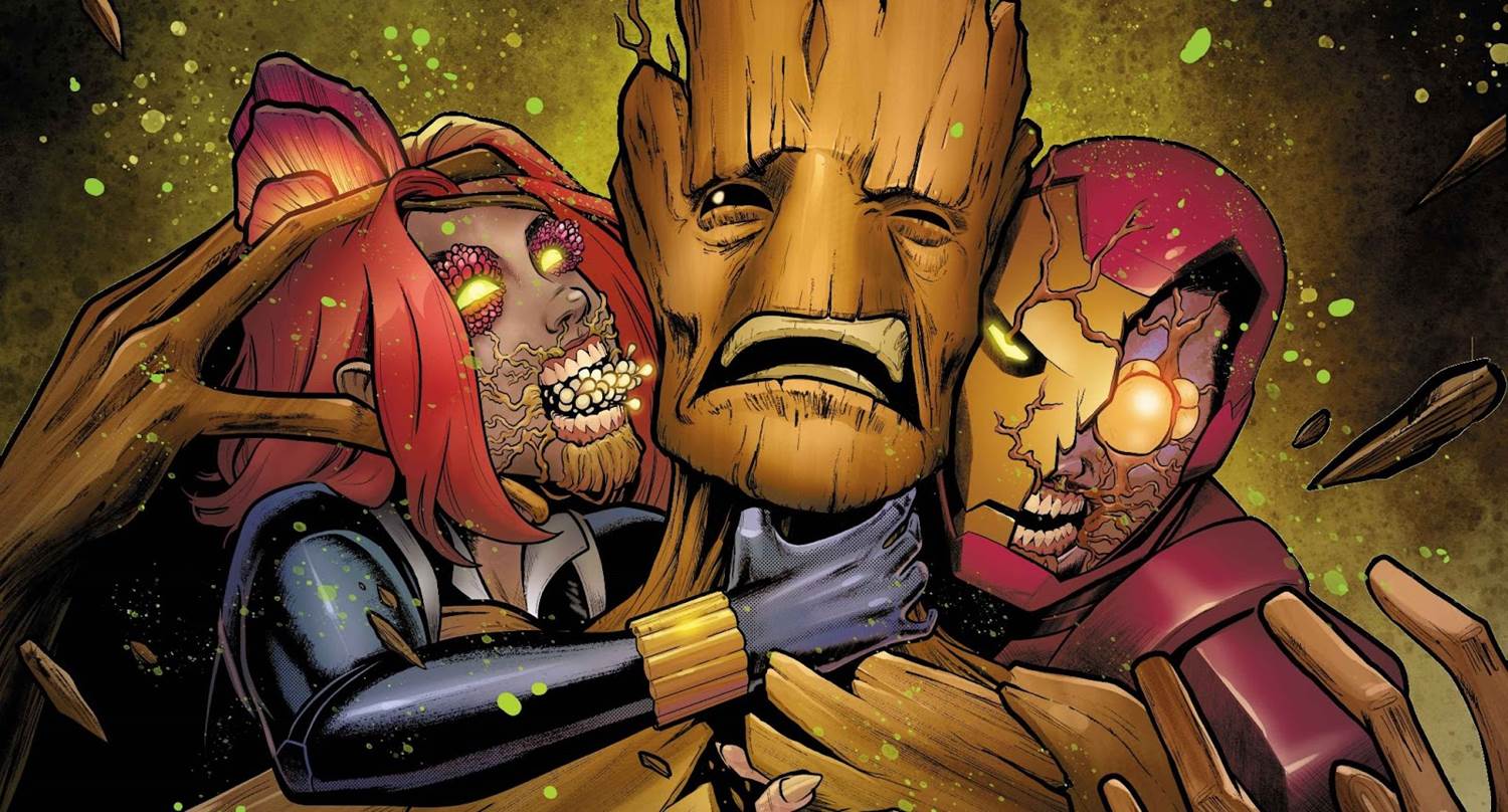 - The preview pages show the fateful sneeze that sets everything in motion, Captain America and Black Widow being infected, and Bruce Banner alongside Groot as they set out to survive a world overgrown with terror!