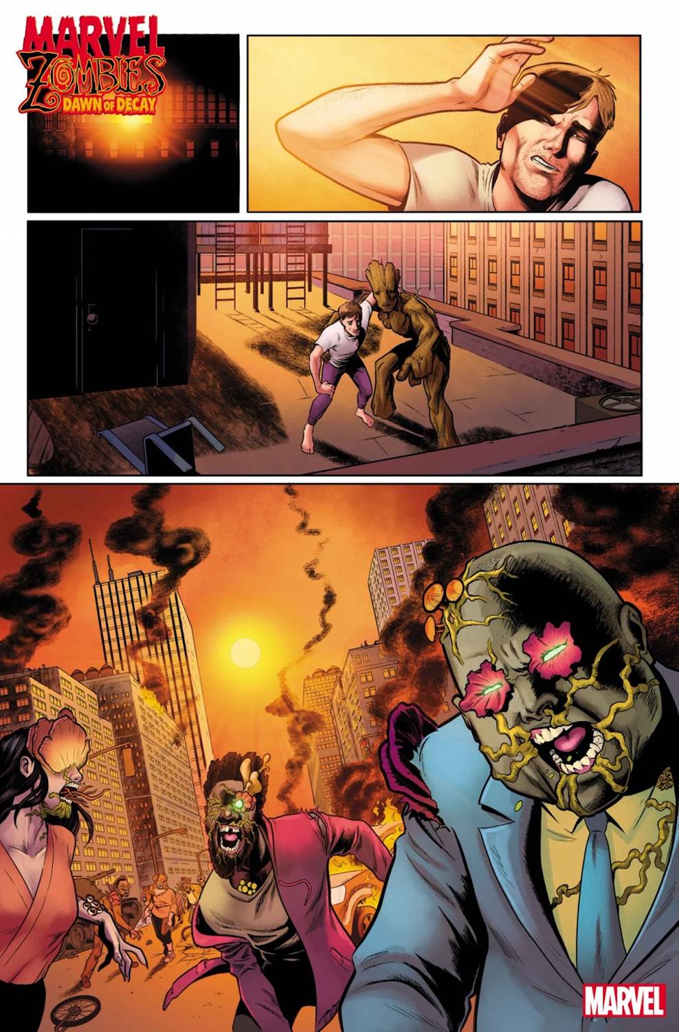 - Perfect for all readers, MARVEL ZOMBIES: DAWN OF DECAY is an exciting new take on Marvel Zombies storytelling that kicks off after a sick Groot, of the Guardians of the Galaxy, accidentally sneezes. Suddenly, a terrifying alien virus is unleashed, turning Earth’s Mightiest Heroes and other Marvel icons into plant-based zombies!