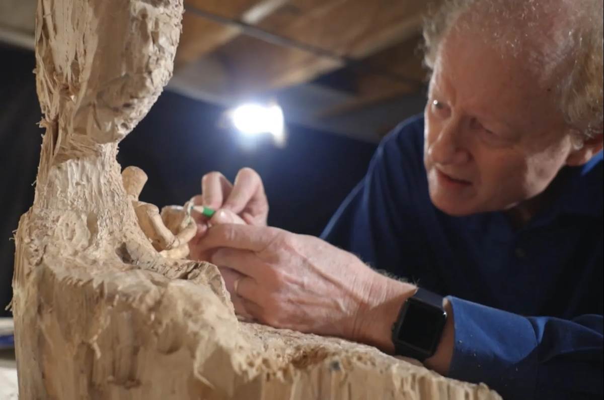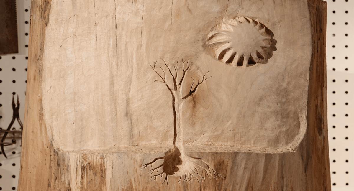 With all his experience, he ventured on his own for an experimental new idea. So, setting up shop in his basement he began to work. Using a piece of wood that Klatte had claimed from a landscaping company that was going to destroy it, he began whittling down the piece, layer by layer. After taking courses in wood carving, he felt that he could try something new with the two mediums.