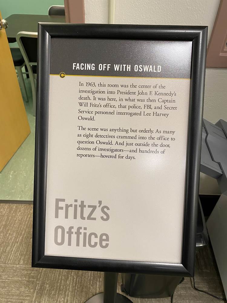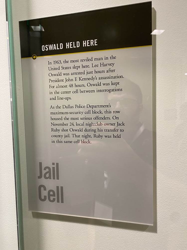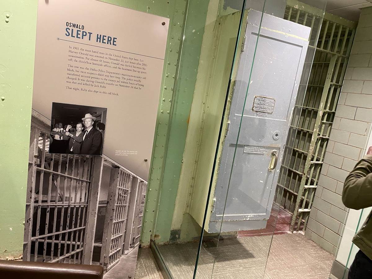 We left that famous site and headed over to another one– the former Dallas Police Department building, which now serves as a law school. This part of the tour felt especially unique, as the building is not open to the public. Despite that, there is a section of the lower level that has been turned into a museum of sorts, which follows Lee Harvey Oswald’s final steps as he was brought into the station, interrogated, and kept in a cell. This is, of course, the site of the above-mentioned killing of Oswald by nightclub owner Jack Ruby, and I was astounded to learn that Ruby was put into the same cell that Oswald had just vacated. While I had made a pilgrimage to Dealey Plaza once before (a couple decades ago), I’ve always wanted to see this location as well, so this part of the trip was extremely memorable to me.